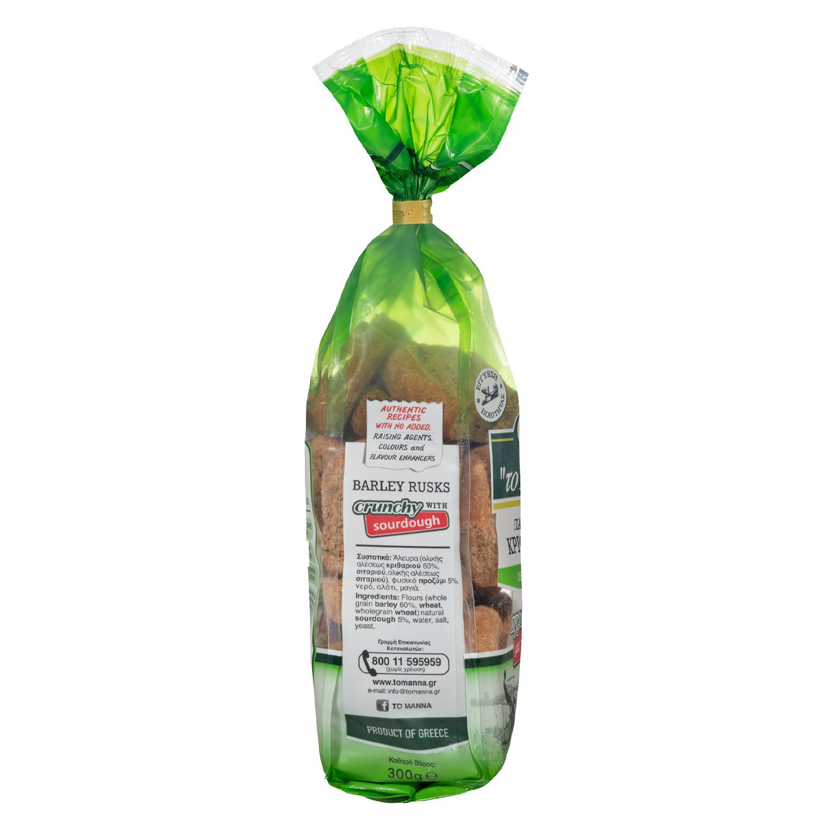 Παξιμάδια διπλοφουρνιστά αφράτα. Δημιουργημένα με φυσικό προζύμι, πλούσια σε εδώδιμες ίνες., αποτελούν το ιδανικό συνοδευτικό για κάθε πιάτο. Πλούσια γεύση κριθαριού από άλευρα ολικής αλέσεως.