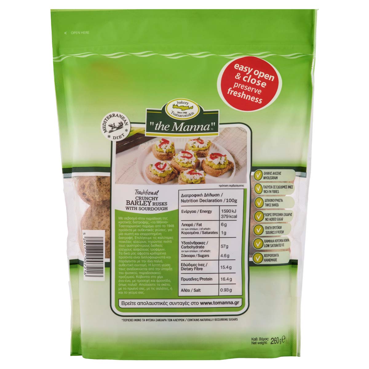 Παρασκευάζεται και Συσκευάζεται απο την: Αρτοποιία "το Μάννα" Ν. ΤΣΑΤΣΑΡΩΝΑΚΗΣ Α.Β.Ε.Ε. Πλάτανος Κισσάμου, Χανιά, Κρήτη. Τηλ.: 28220 41228. 41282, 41771, Fax: 28200 41193