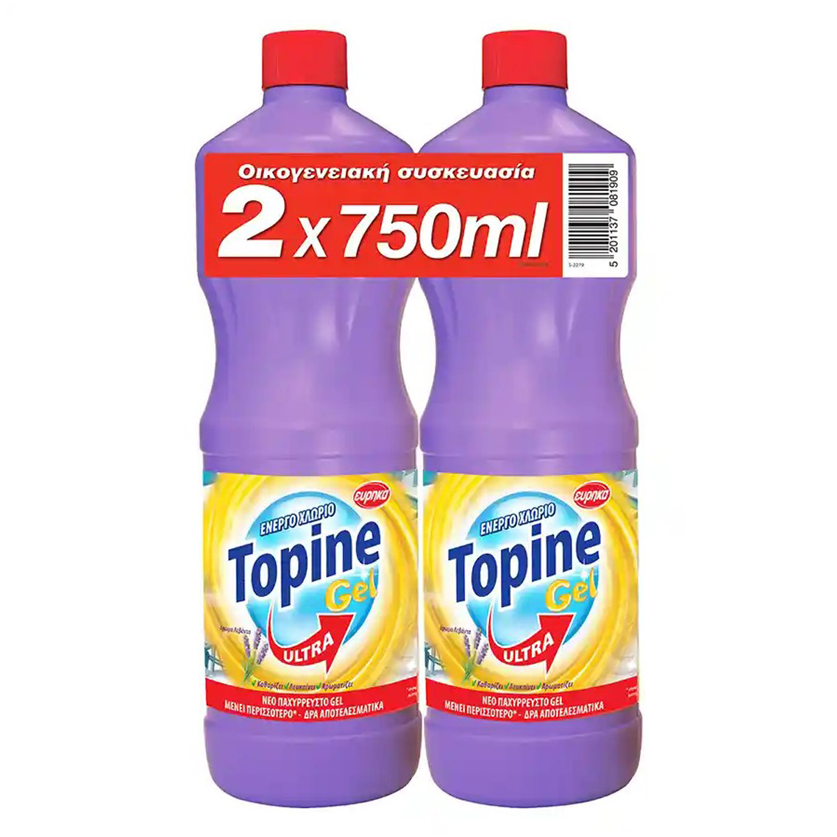 Το ενεργό χλώριο Τopine Gel Ultra στην παχύρρευστη μορφή GEL είναι ιδανικό για υγιεινή, καθαριότητα και λεύκανση. Μένει και δρα με εξαιρετικά αποτελέσματα σε κάθετες επιφάνειες π.χ. λεκάνη τουαλέτας. Καθαρίζει, λευκαίνει και αρωματίζει πλακάκια, νεροχύτες, είδη υγιεινής, επιφάνειες εμαγιέ, φορμάικα, μάρμαρα, και μωσαϊκά.
