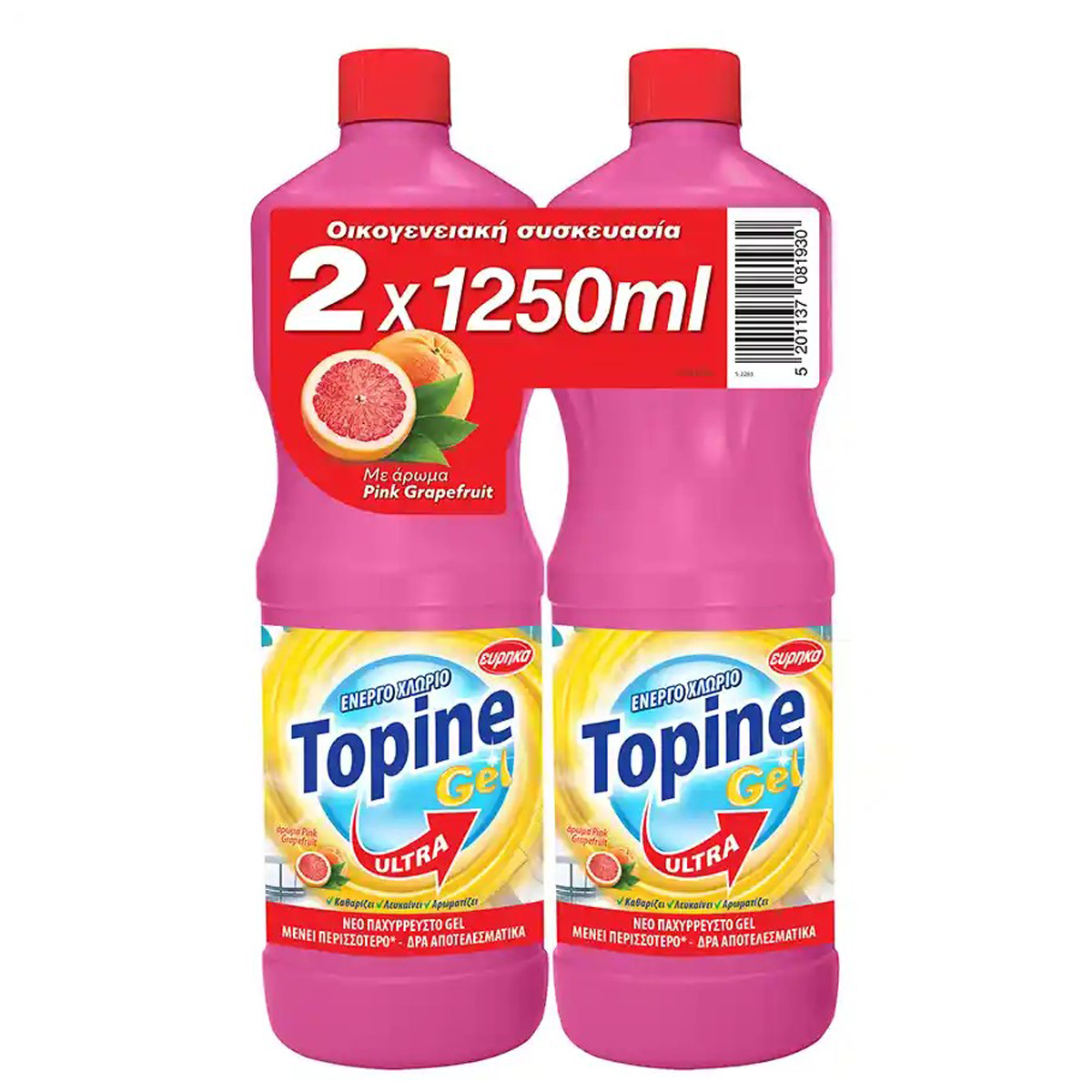 Το ενεργό χλώριο Τopine Gel Ultra στην παχύρρευστη μορφή GEL είναι ιδανικό για υγιεινή, καθαριότητα και λεύκανση. Μένει και δρα με εξαιρετικά αποτελέσματα σε κάθετες επιφάνειες π.χ. λεκάνη τουαλέτας. Καθαρίζει, λευκαίνει και αρωματίζει πλακάκια, νεροχύτες, είδη υγιεινής, επιφάνειες εμαγιέ, φορμάικα, μάρμαρα, και μωσαϊκά.