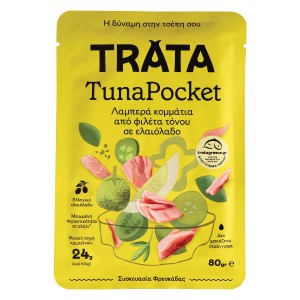 Λαμπερά κομμάτια από φιλέτα τόνου σε ελληνικό ελαιόλαδο, σε μία εύκολη και πρακτική συσκευασία που δεν χρειάζεται στράγγισμα. Ο απόλυτος Μεσογειακός συνδυασμός γεύσης που απογειώνει τις πιο φρέσκες σαλάτες και μακαρονάδες / σάντουιτς, κάθε φορά, στο λεπτό! Ο τόνος σε ελληνικό ελαιόλαδο Tuna Pocket TRATA, αποτελεί μία κορυφαία φυσική πηγή πρωτεΐνης και είναι ένα boost ενέργειας στην καθημερινή σου διατροφή.