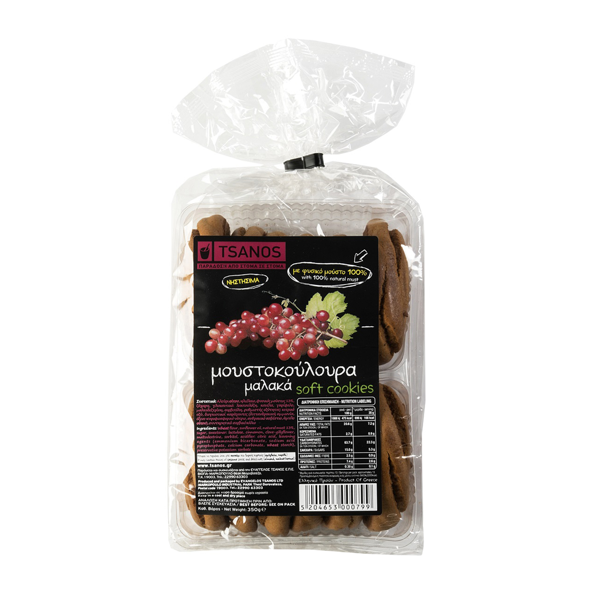 Παραδοσιακά μαλακά μουστοκούλουρα, με 100% φυσικό μούστο. Ο μούστος είναι ο χυμός των σταφυλιών και περιέχει βιταμίνη Α, Β και C, αλλά και άλλα θρεπτικά συστατικά όπως σίδηρο και ασβέστιο, αποτελώντας έτσι μια σημαντική πηγή ενέργειας και βιταμινών. Τα μουστοκούλουρα Τσάνος είναι γεύση παράδοσης, αυθεντικά μουστοκούλουρα Μαρκόπουλου, είναι νηστίσιμα και ιδανικό σνακ για κάθε ώρα της μέρας. Σε πρακτική συσκευασία για μεταφορά και διατήρηση.