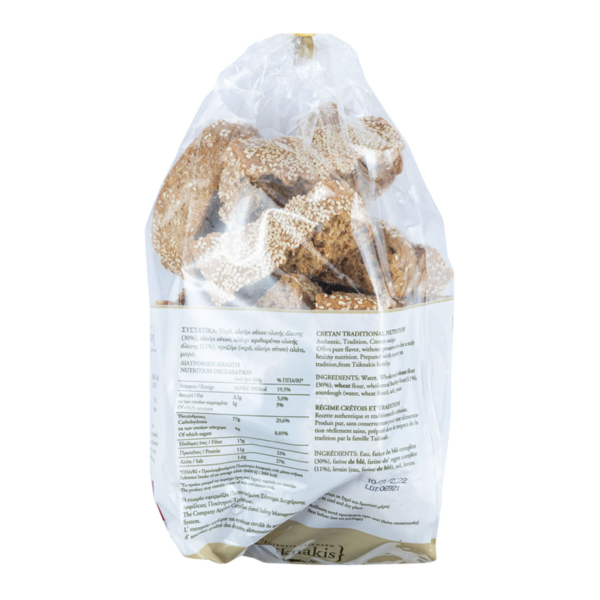 Μιγάδι Παξιμάδι ολικής αλέσεως με χωριάτικο προζύμι από αγνά υλικά χωρίς συντηρητικά. Ψημένο με την μοναδική συνταγή της οικογένειας Τσικνάκη.