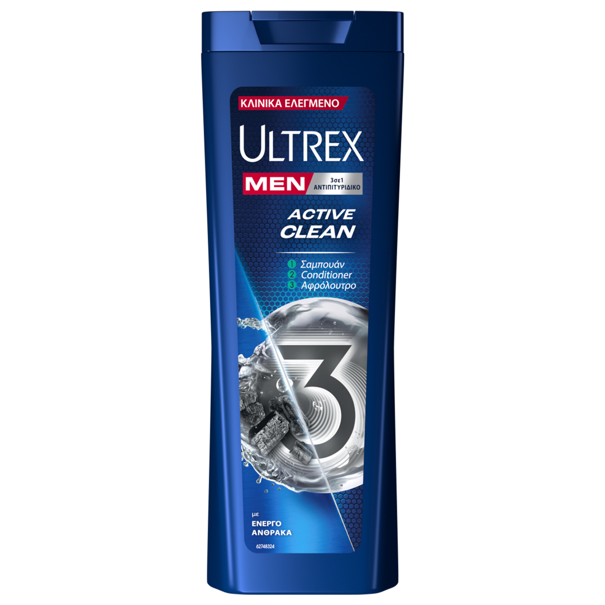 Ultrex Men Σαμπουάν Active Clean 3 Σε 1 360 ml