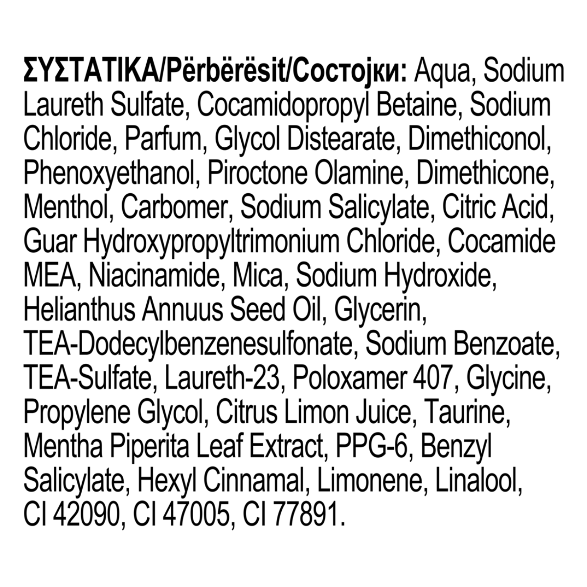 Αντιπιτυριδικό Σαμπουάν για κάθε τύπο μαλλιών. 10Χ Βαθιά Δράση^. Έως 100% Προστασία από την Πιτυρίδα*. Aίσθηση Φρεσκάδας έως 24 ώρες. Άμεση αφαίρεση της λιπαρότητας. Φρεσκάδα που διαρκεί όλη μέρα. ΤΕΧΝΟΛΟΓΙΑ ULTRA PERFORMANCE ΚΑΤΑ ΤΗΣ ΠΙΤΥΡΙΔΑΣ που βοηθάει έως 100% στην εξάλειψη της πιτυρίδας και στην πρόληψη της επανεμφάνισής της*. Με Νιασυναμίδη που βοηθάει στην ενυδάτωση και ενίσχυση του φραγμού του τριχωτού της κεφαλής. Με Eκχύλισμα Λεμονιού και Μέντας, γνωστά για τις δροσιστικές και αναζωογονητικές τους ιδιότητες. Ειδικά σχεδιασμένο για άντρες. Κλινικά Ελεγμένο.
