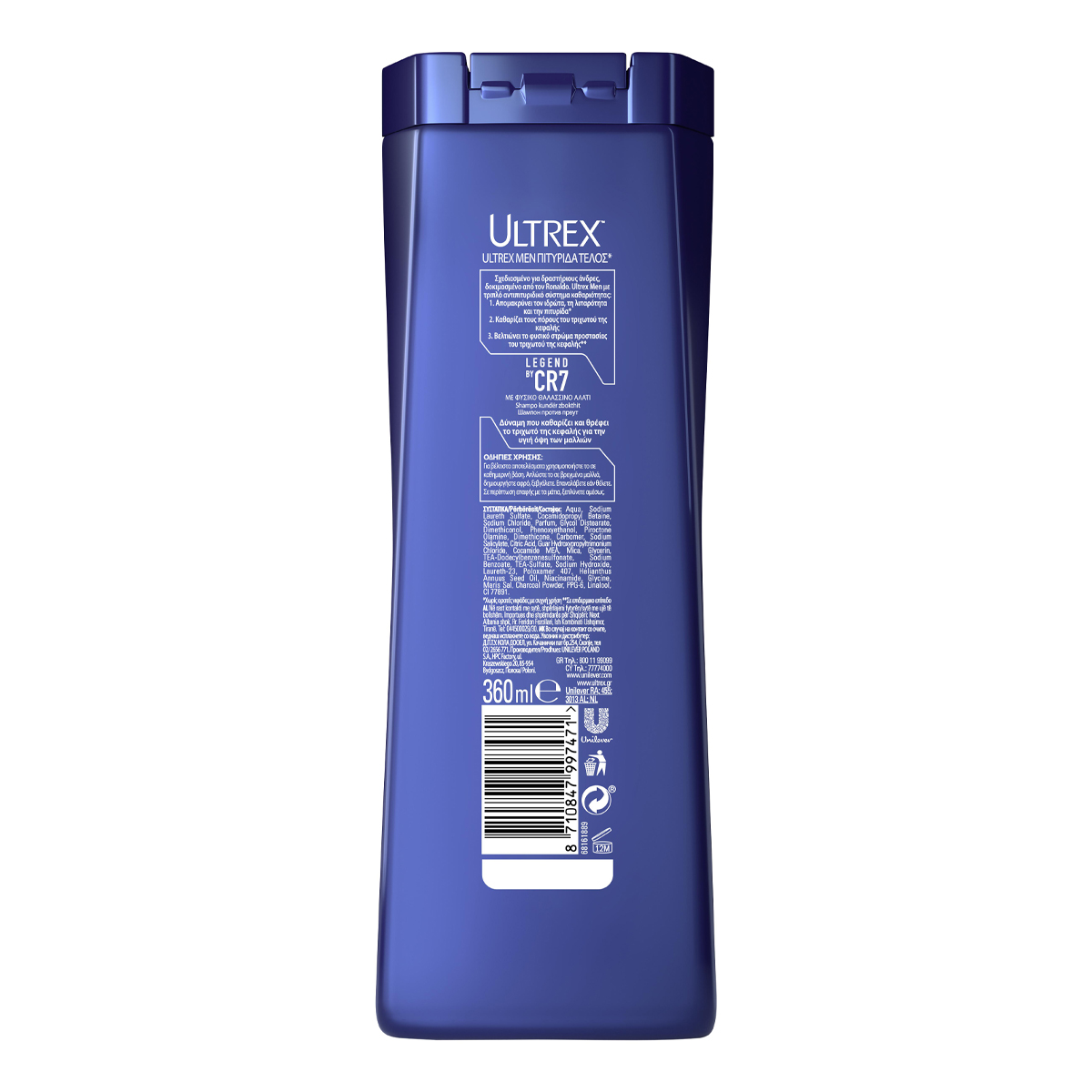 SPECIAL EDITION. Σαμπουάν ειδικά σχεδιασμένο για άνδρες ΜΕ ΤΗΝ ΥΠΟΓΡΑΦΗ ΤΟΥ ΘΡΥΛΟΥ RONALDO. Ultrex LEGEND by CR7 με φυσικό θαλασσινό αλάτι. Σαμπουάν ανδρικής περιποίησης κατάλληλο για αφαίρεση της λιπαρότητας του τριχωτού της κεφαλής. Δύναμη που καθαρίζει και θρέφει το τριχωτό της κεφαλής για την υγιή όψη των μαλλιών. MADE BY LEGEND. MADE WITH LEGEND. MADE FOR LEGENDS. ΠΙΤΥΡΙΔΑ ΤΕΛΟΣ!
