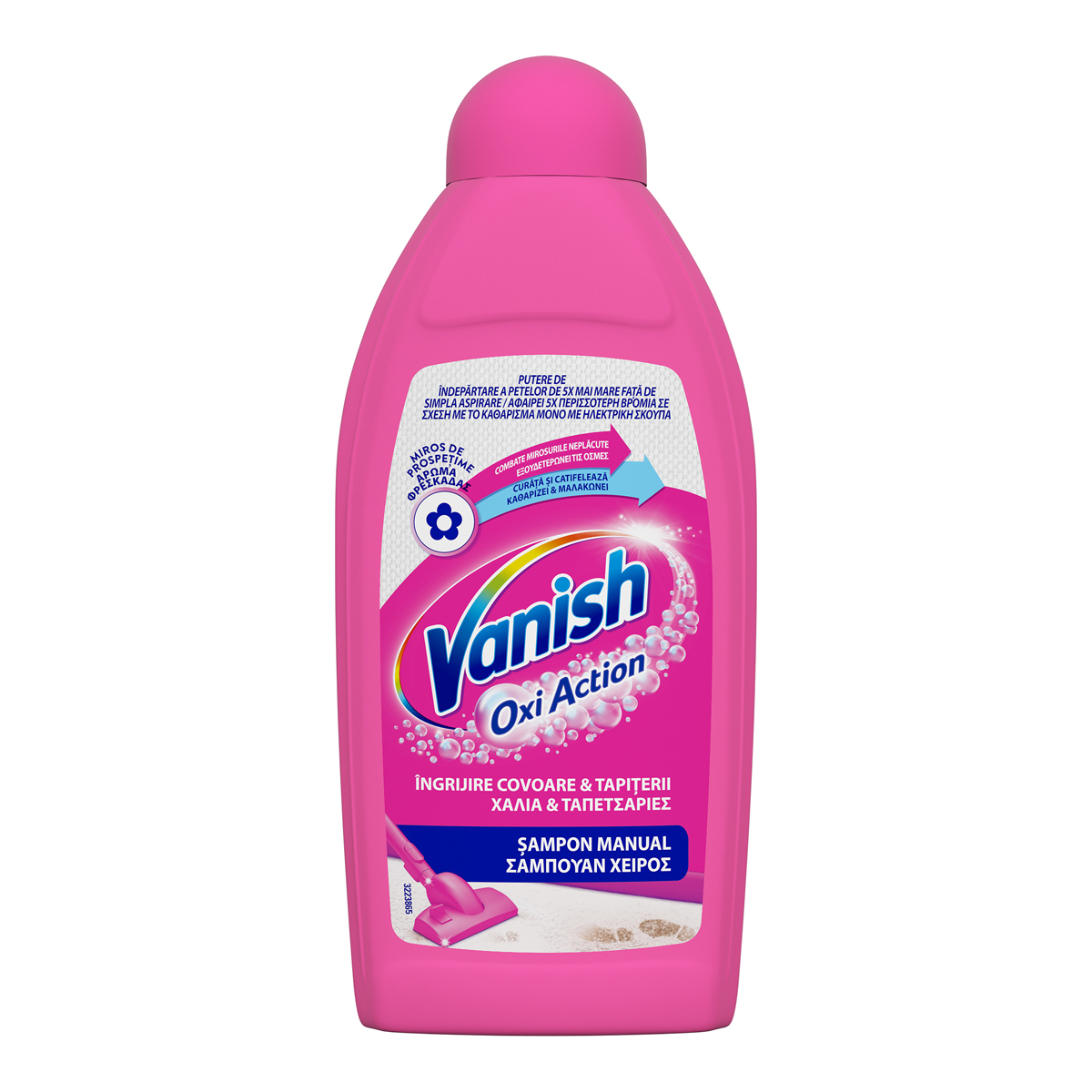 Το Vanish Σαμπουάν Χειρός μπορεί να χρησιμοποιηθεί στα χαλιά και τις ταπετσαρίες, για να αφαιρέσει τη βαθιά βρομιά και τη σκόνη. Όταν θέλετε να πραγματοποιήσετε βαθύ καθαρισμό χαλιού, το Vanish Σαμπουάν Χειρός είναι κατάλληλο για χρήση σε μεγάλες περιοχές του χαλιού, με σκοπό να διαλύσει και να αφαιρέσει ακόμα και τους πιο επίμονους στεγνούς λεκέδες και σκόνη. Το πλούσιο, αφρώδες σαμπουάν εξουδετερώνει επίσης τις δυσάρεστες οσμές, κάνοντας το χαλί και την ταπετσαρία σας να μυρίζουν καθαριότητα & φρεσκάδασε σχέση με το απλό καθάρισμα μόνο με ηλεκτρική σκούπα.