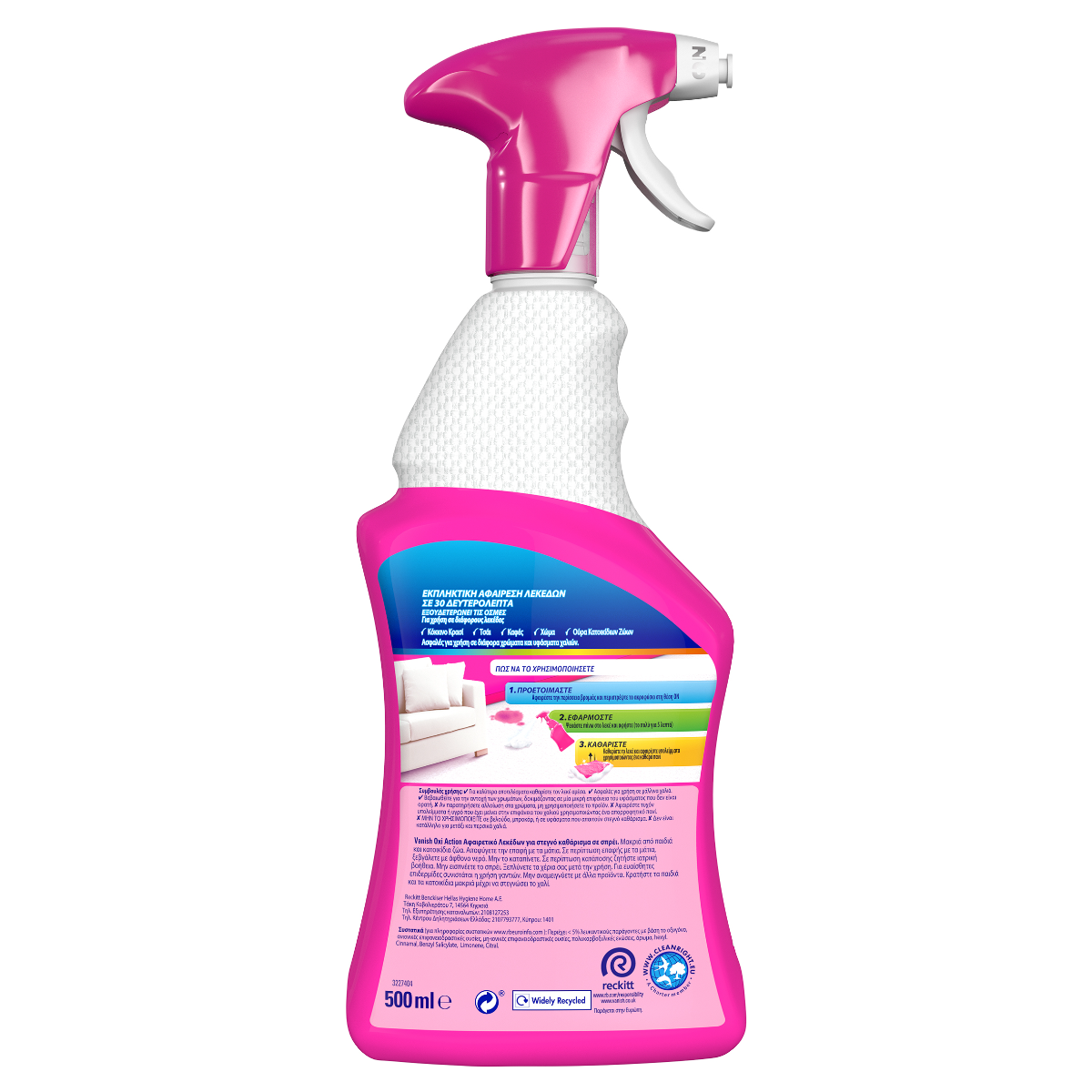Το Vanish Carpet Oxi Action έχει εκπληκτικά αποτελέσματα στην αφαίρεση λεκέδων από την πρώτη φορά! Το Vanish σε μορφή spray μπορεί να εξαφανίσει εντελώς ακόμα και τους πιο δύσκολους λεκέδες από το χαλί ή την ταπετσαρία σας. ΕΚΠΛΗΚΤΙΚΗ ΑΦΑΙΡΕΣΗ ΛΕΚΕΔΩΝ ΣΕ 30 ΔΕΥΤΕΡΟΛΕΠΤΑ ΕΞΟΥΔΕΤΕΡΩΝΕΙ ΤΙΣ ΟΣΜΕΣ. Για χρήση σε διάφορους λεκέδες όπως κόκκινο κρασί, τσάι καφές, χώμα και ούρα κατοικίδιων ζώων. Ασφαλές για χρήση σε διάφορα χρώματα και υφάσματα χαλιών.