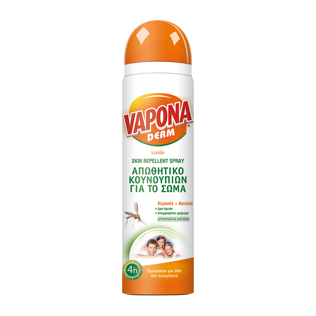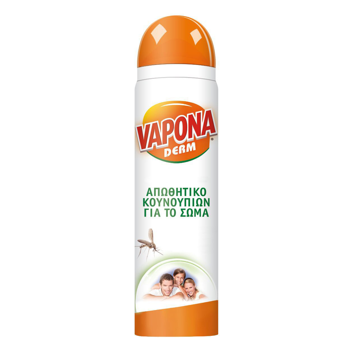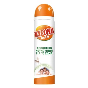 Η εντομοαπωθητική λοσιόν Vapona σε μορφή σπρέι, εγγυάται την προστασία του δέρματος από κοινά τσιμπήματα και τσιμπήματα κουνουπιών τίγρεις έως και 5 ώρες μετά την εφαρμογή. Είναι κατάλληλη για πρόσωπο και σώμα, ενώ δεν περιέχει αλκοόλη, χρωστικές & συντηρητικά.
