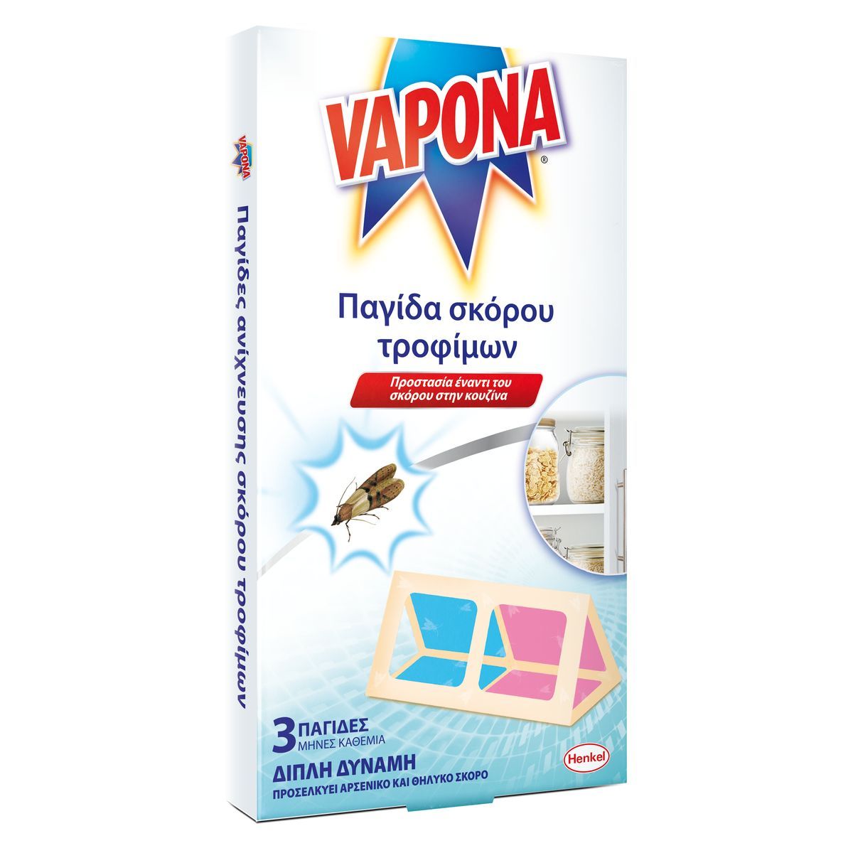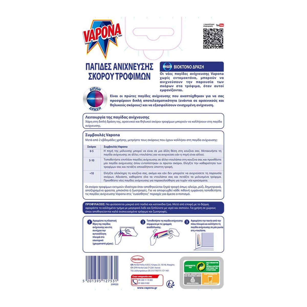 Οι παγίδες ανίχνευσης Vapona χωρίς εντομοκτόνο, μπορούν να ανιχνεύσουν την παρουσία των σκόρων στα τρόφιμα, όταν αυτοί εμφανίζονται. Είναι οι πρώτες παγίδες ανίχνευσης που αναπτύχθηκαν για να σας προσφέρουν διπλή αποτελεσματικότητα (ενάντια σε αρσενικούς και θηλυκούς σκόρους) και να εξασφαλίσουν ενισχυμένη απόδοση.