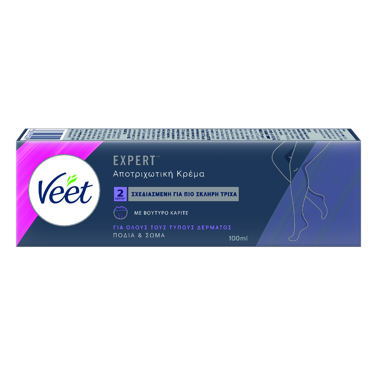 Η Veet Expert Αποτριχωτική Κρέμα με βούτυρο καριτέ είναι εμπλουτισμένη με έναν ενυδατικό παράγοντα που βρίσκεται φυσικά στο δέρμα. Σχεδιασμένη για αφαίρεση πιο σκληρής τρίχας, είναι αποτελεσματική απο τα 2 πρώτα λεπτά εφαρμογής και διατηρεί το δέρμα ενυδατωμένο για έως 48 ώρες. Είναι δερματολογικά ελεγμένη και κατάλλληλη για όλους τους τύπους δέρματος, συμπεριλαμβανομένων των ευαίσθητων. Η συσκευασία περιέχει σπάτουλα.