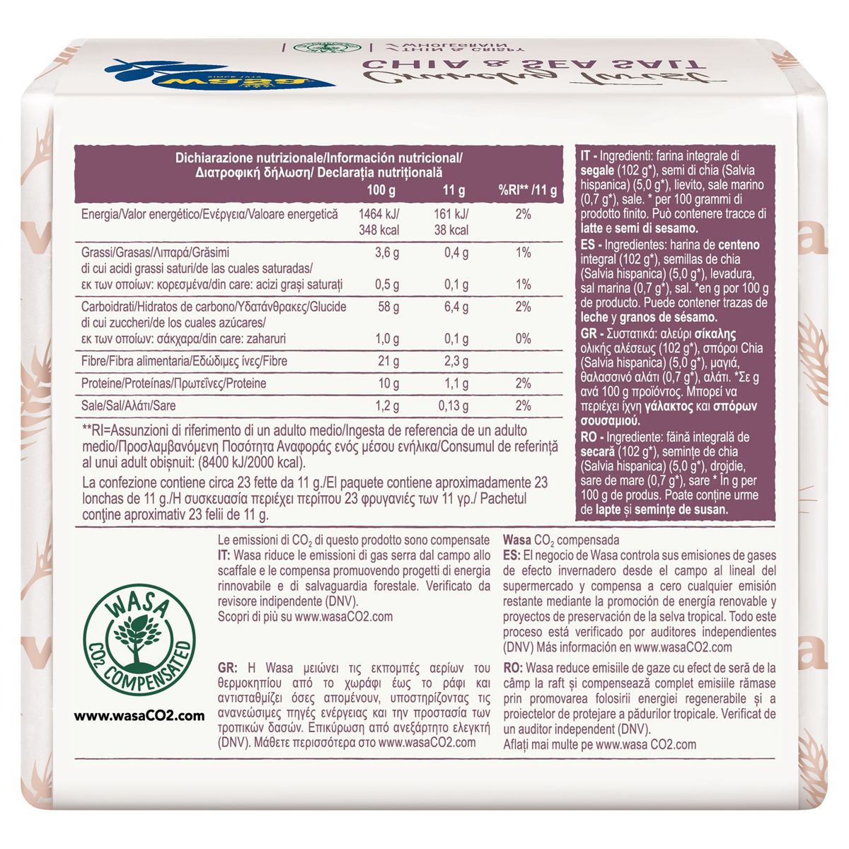 Wasa Crunchy Twist Φρυγανιές Chia & Θαλασσινό Αλάτι 245 gr