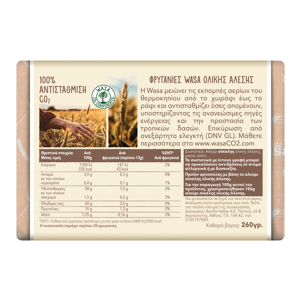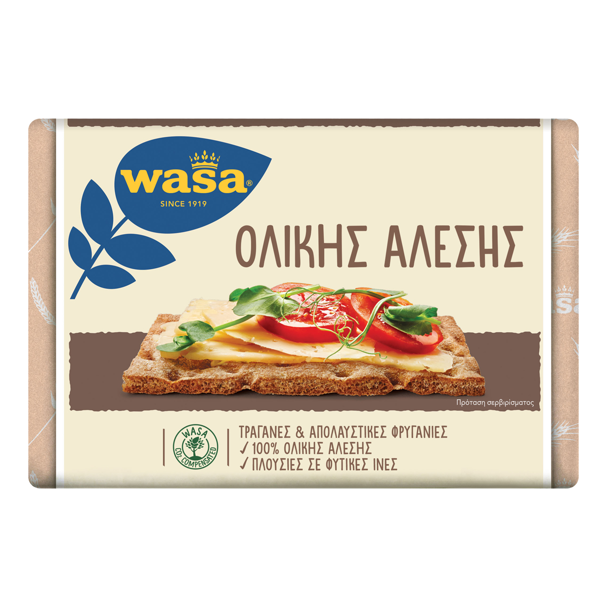 Οι Wasa Ολικής Άλεσης είναι οι κλασικές φρυγανιές από αλεύρι σίκαλης ολικής άλεσης. Παρασκευάζονται με την ίδια συνταγή και φροντίδα για περισσότερα από 80 χρόνια και θα συνεχίσουν να παρασκευάζονται με τον ίδιο τρόπο προκειμένου να διατηρήσουν τον ιδιαίτερα τραγανό και λαχταριστό τους χαρακτήρα.