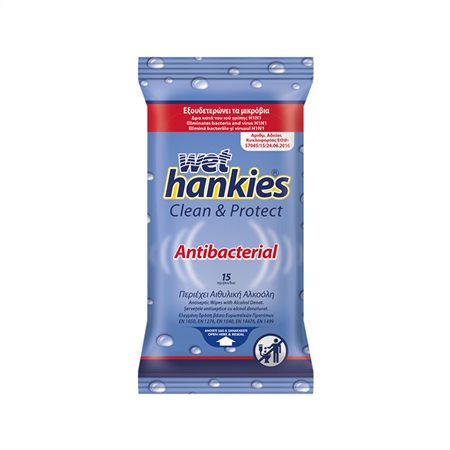 Wet Hankies Υγρομάντηλα Antibacterial 15 Τεμάχια