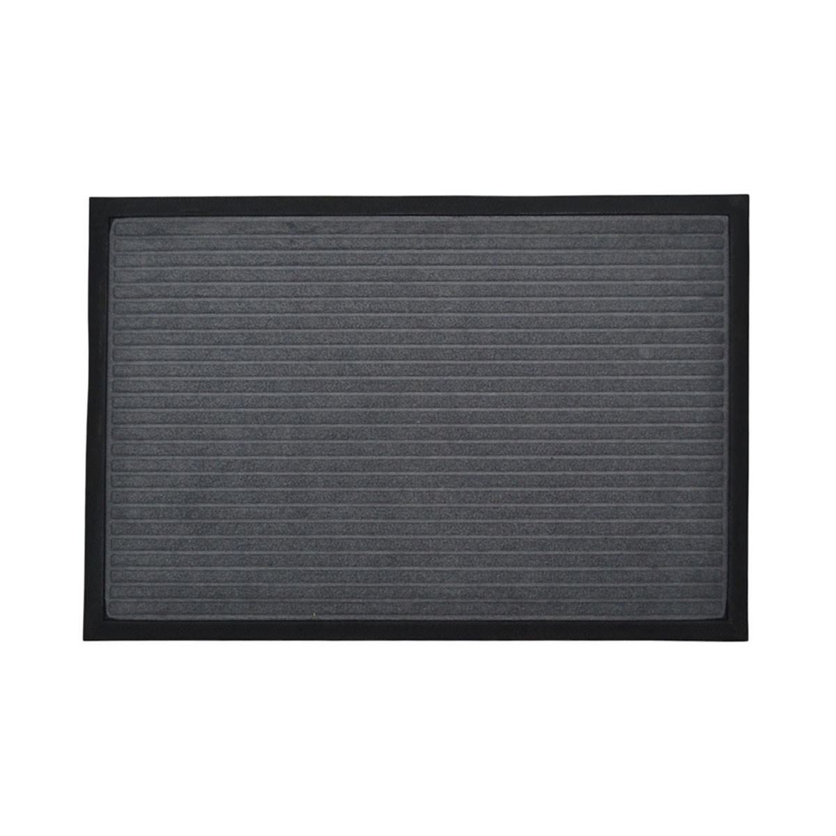 Πατάκι εισόδου από πολυεστέρα σε γκρι χρώμα, με αντιολισθητική λαστιχένια βάση που εξασφαλίζει σταθερότητα. Ανθεκτικό και πρακτικό, συγκρατεί σκόνη και υγρασία, ιδανικό για εσωτερικούς και εξωτερικούς χώρους.