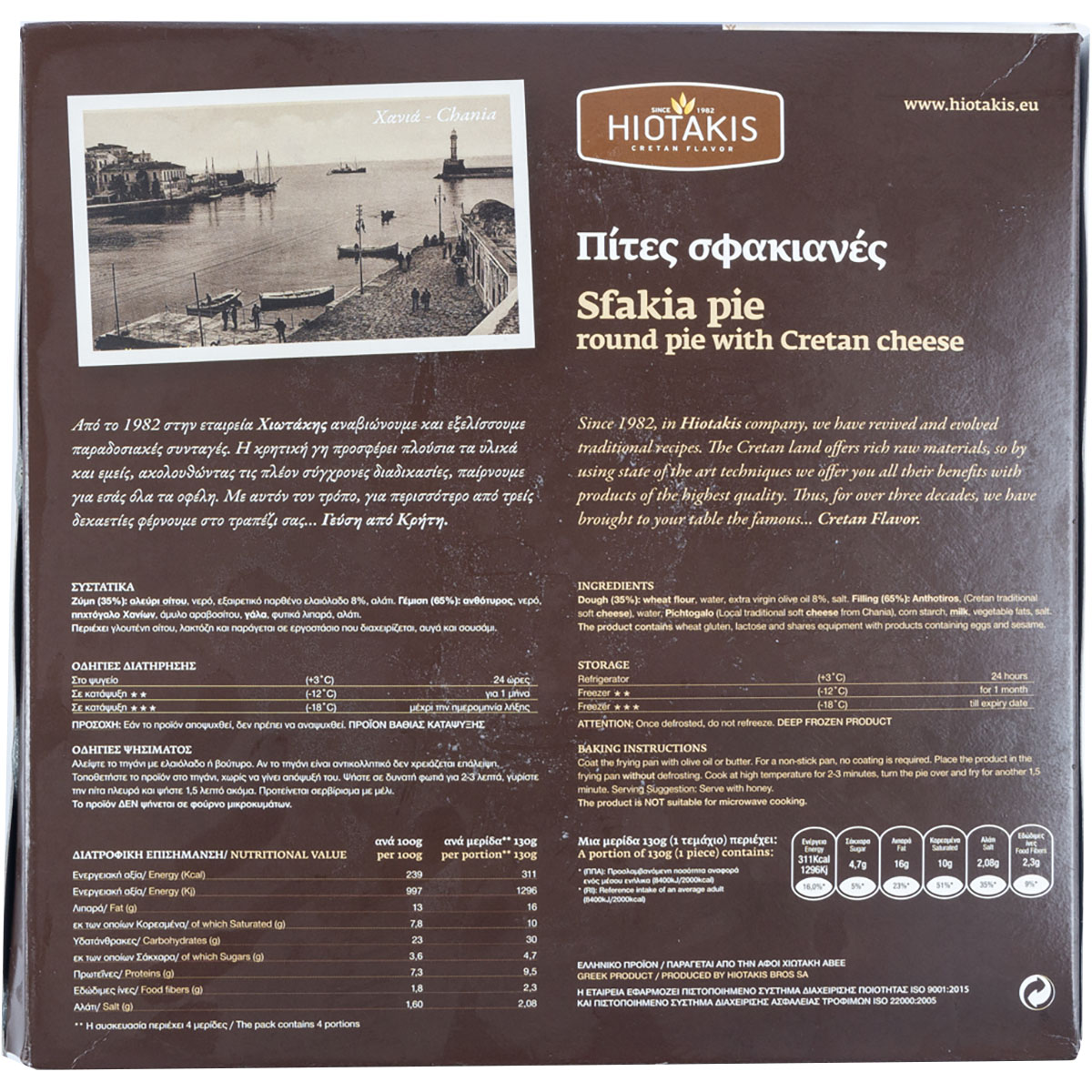 Γέμιση (65%): ανθότυρος, νερό, πηχτόγαλο Χανίων, άμυλο ΑΡΑΒΟΣΙΤΟΥ, ΓΑΛΑ, φυτικά λιπαρά, αλάτι.