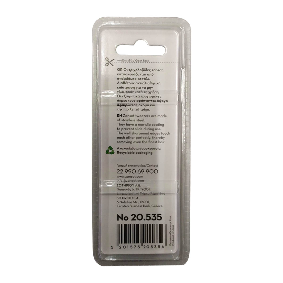 Οι τριχολαβίδες zansot κατασκευάζονται από ανοξείδωτο ατσάλι. Διαθέτουν αντιολισθητική επίστρωση για να μην γλιστρούν κατά την χρήση. Οι εξαιρετικά τροχισμένες άκρες τους εφάπτονται άψογα αφαιρώντας ακόμα και την πιο λέπτή τρίχα.