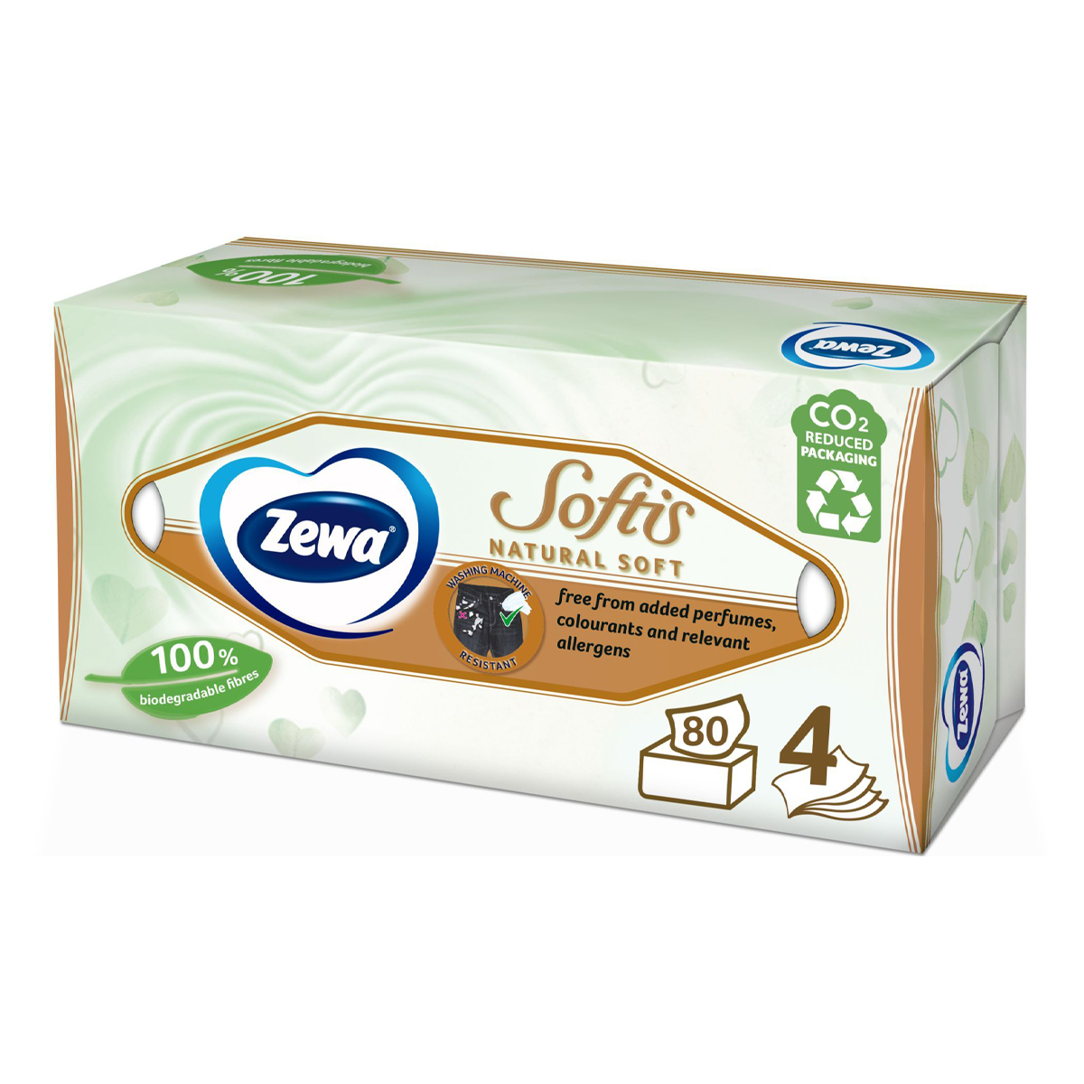 Το Zewa Softis Natural Soft είναι ένα εξαιρετικά μαλακό 4φυλλο χαρτί, που σέβεται το δέρμα και το περιβάλλον. Χωρίς πρόσθετα αρώματα, χρωστικές και αλλεργιογόνα. Κατασκευασμένο από 100% βιοαποικοδομήσιμες και φυσικής προέλευσης ίνες. Ανακυκλώσιμη συσκευασία με μειωμένες εκπομπές CO2. Πιστοποιημένα προϊόντα FSC. Οι μη λευκασμένες ίνες, προσδίδουν ένα απαλό κρεμώδες χρώμα, το οποίο το κάνουν πιο φυσικό χωρίς πρόσθετα. Απαλό χαρτί, αλλά τόσο ανθεκτικό που μπορεί να αντέξει το πλύσιμο στο πλυντήριο. Τα Zewa Softis Natural Soft διατίθενται και σε επιτραπέζια χαρτομάντιλα, αλλά και σε χαρτί υγείας. Ανακαλύψτε τα απαλά και ανθεκτικά χαρτομάντιλα Zewa Softis Natural Soft. Σχεδιασμένα με σεβασμό προς το δέρμα σας, εμπνευσμένα από τη φύση. Χωρίς πρόσθετο άρωμα, χρωστικές ουσίες ή αλλεργιογόνα*, τα χαρτομάντιλα Zewa Softis Natural Soft είναι απαλά στο δέρμα και έχουν υπέροχο, φυσικό, κρεμώδες χρώμα, κοντά στο φυσικό χρώμα των ινών, μιας και περιέχει μη λευκασμένες ίνες φυσικής προέλευσης, διατηρώντας ταυτόχρονα την υψηλή ποιότητα και απαλότητα Zewa, που αγαπάτε.