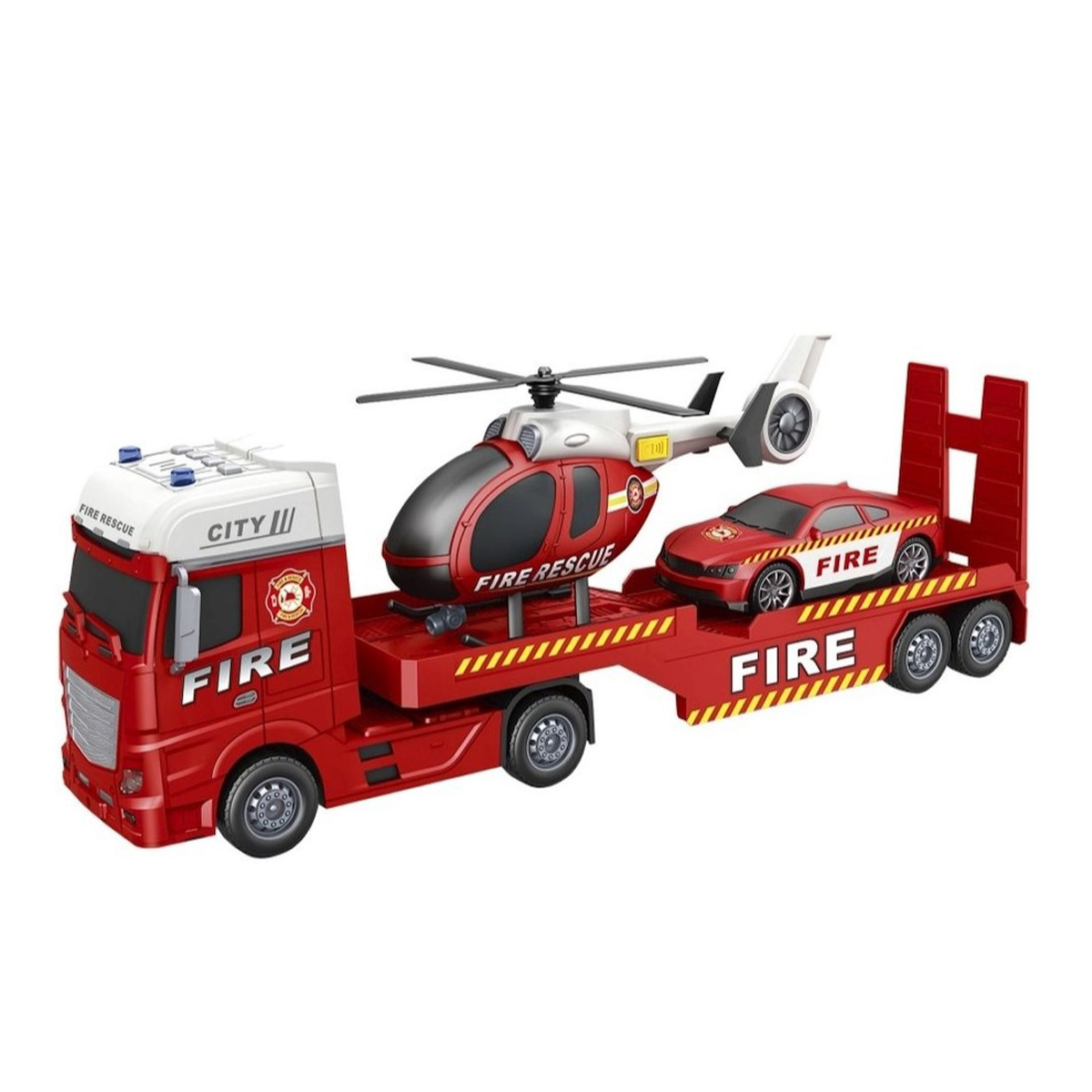 Zita Toys Πυροσβεστικό Φορτηγό Μεταφορέας Ελικόπτερου & Αυτοκινήτου Με Ήχο & Φώς