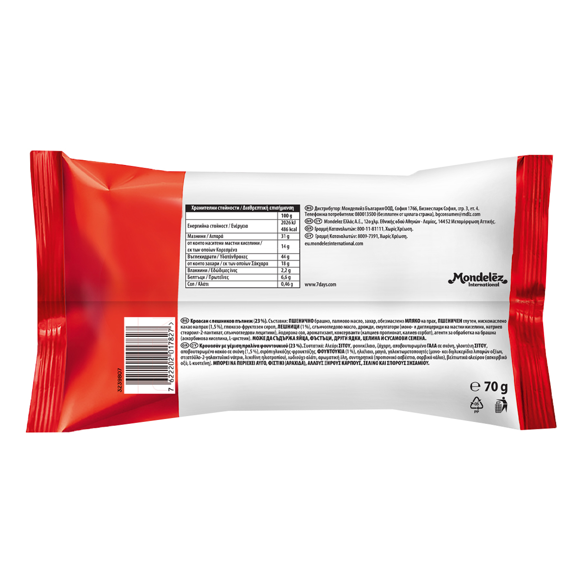 7 Days Κρουασάν Hazelnut Με Πραλίνα Φουντουκιού 70 gr