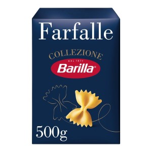 Τα μακαρόνια Barilla Farfalle (Φιογκάκια) φτιάχνονται από ένα φύλλο ζύμης που κόβεται σε τετραγωνάκια και "τσιμπιέται" στο κέντρο η οποία ξαφνιάζει τον ουρανίσκο, μέσω της διαφορετικής υφής του πιο χοντρού κεντρικού τμήματος και των δύο άκρων: μια πραγματική απόλαυση για τους καλοφαγάδες. Από τα πιο χαρούμενα σχήματα στην κουζίνα, τα ζυμαρικά Farfalle, όπως οι πεταλούδες, πετούν από τη μία γεύση στην άλλη, και προσαρμόζονται σε πολλούς διαφορετικούς συνδυασμούς γεύσεων.