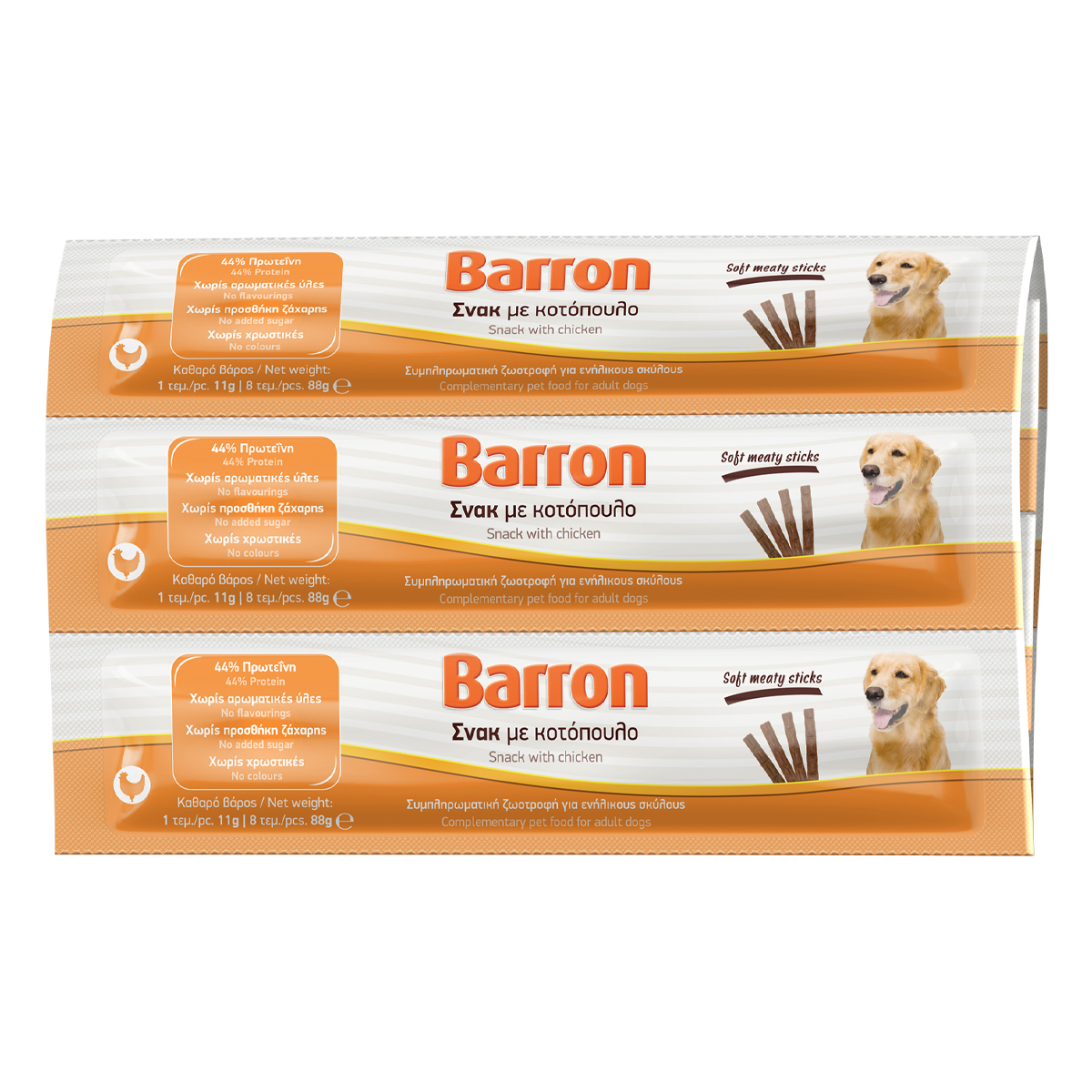 Barron Sticks Σνακ Για Σκύλους Με Κοτόπουλο 8 x 11 gr
