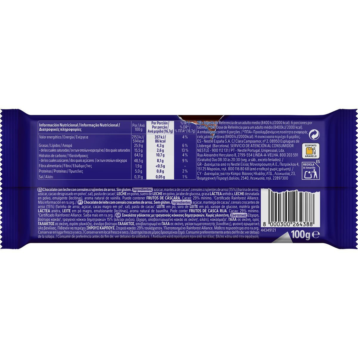 CRUNCH Σοκολάτα γάλακτος με τραγανούς κόκκους δημητριακών. ΧΩΡΙΣ ΓΛΟΥΤΕΝΗ. Η CRUNCH είναι μια σοκολάτα με προσωπικότητα και χιούμορ. Ό,τι και αν συμβαίνει, με μια CRUNCH και τη φαντασία σου όλα μπορούν να γίνουν όπως τα θέλεις: να ακούσεις αυτό που περιμένεις να σου πει, να αλλάξει το σκηνικό όπως το θες, να περάσεις το μάθημα, να πάρεις τη δουλειά, να ξεφύγεις και να πας διακοπές, να γλυτώσεις από την υπερβολή των γούτσου γούτσου του Αγίου Βαλεντίνου. Κυκλοφόρησε στην Ελλάδα το 1989 με την CRUNCH γάλακτος και η χαρακτηριστική γεύση της προέρχεται από το μοναδικό συνδυασμό πλούσιας σοκολάτας και τραγανών δημητριακών. Επιλέγουμε μόνο ποιοτικούς κόκκους κακάο από πιστοποιημένες 100% αειφόρες πηγές που έχουν συλλεχθεί με βάση το NESTLE COCOA PLAN, το οποίο σκοπεύει στη βελτίωση της ζωής των καλλιεργητών κακάο και της ποιότητας των προϊόντων τους. Σε συνεργασία με το Rainforest Alliance.