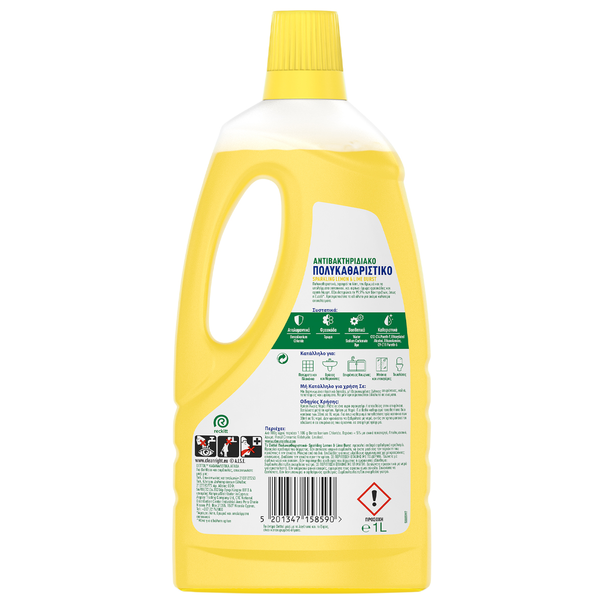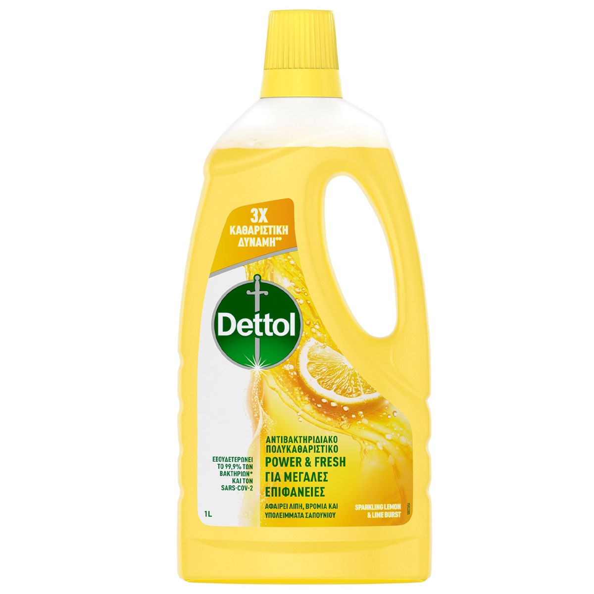 To καθαριστικό πατώματος Dettol είναι αντιβακτηριδιακό και μπορεί να χρησιμοποιηθεί σε όλες τις σκληρές πλενόμενες επιφάνειες για ένα συνολικά καθαρό σπίτι. Το Αντιβακτηριδιακό Power & Fresh είναι ένα ισχυρό πολυκαθαριστικό προϊόν με απίστευτη φρεσκάδα το οποίο μπορείτε να χρησιμοποιήσετε σκέτο σε δύσκολους λεκέδες ή να το διαλύσετε για μεγάλες επιφάνειες. Η επαναστατική του σύνθεση αντιμετωπίζει αποτελεσματικά τα λίπη και τη μουτζούρα, εξουδετερώνοντας το 99,9% των μικροβίων, κάνοντας τον καθαρισμό του πατώματος της κουζίνας,της τουαλέτας κτλ ευκολότερη υπόθεση. Με υπέροχο άρωμα Λεμόνι.