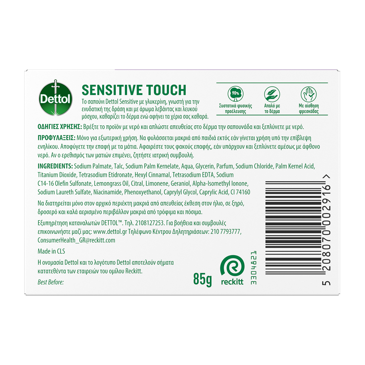 Dettol Σαπούνι Αντιβακτηριδιακό Για Ευαίσθητες Επιδερμίδες 85 gr