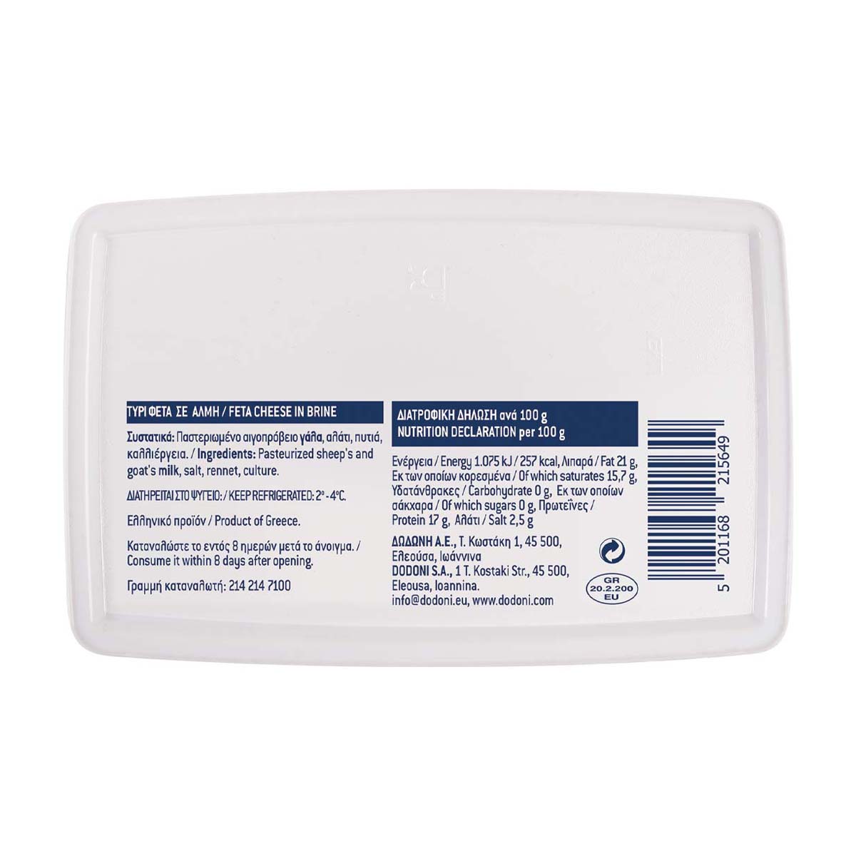 Η αυθεντική φέτα ΔΩΔΩΝΗ σε πρακτική πλαστική συσκευασία που διατηρεί το τυρί μέσα στη φυσική του άλμη, χαρίζοντας του φρεσκάδα και μεγαλύτερο χρόνο συντήρησης.