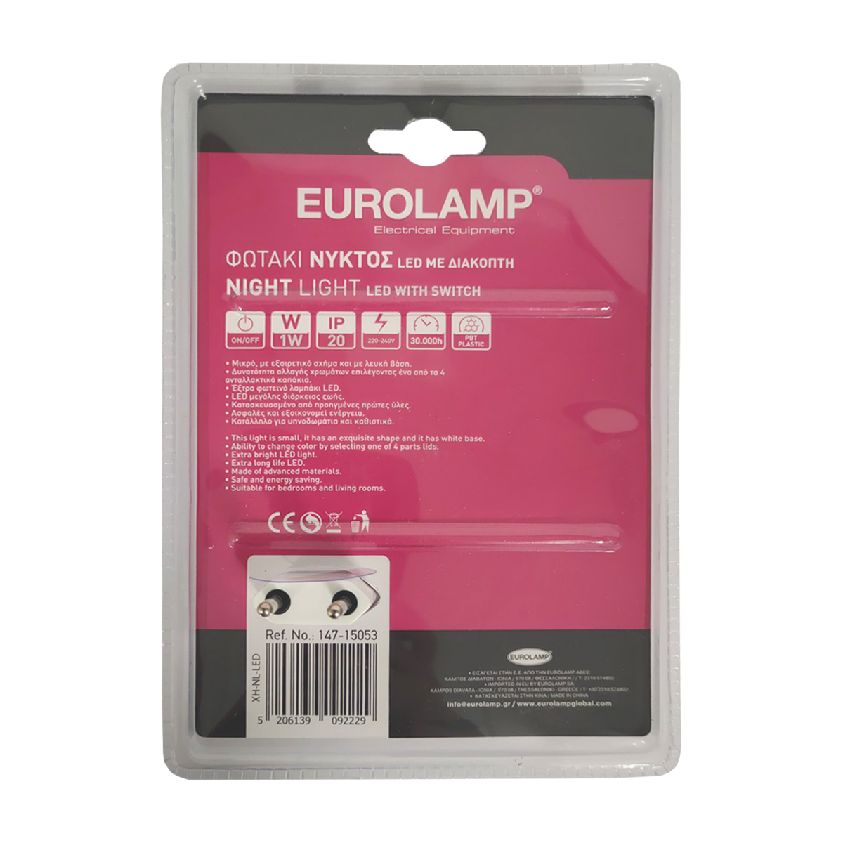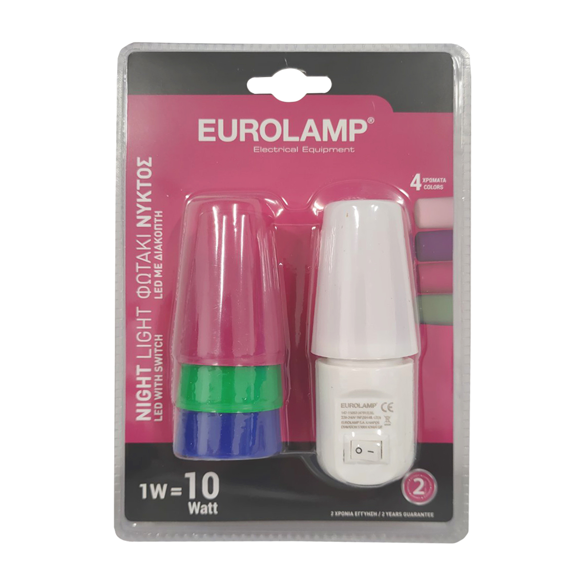 Eurolamp Φωτάκι Νυκτός Led Με Διακόπτη 1W 220 - 240V 4 Χρώματα