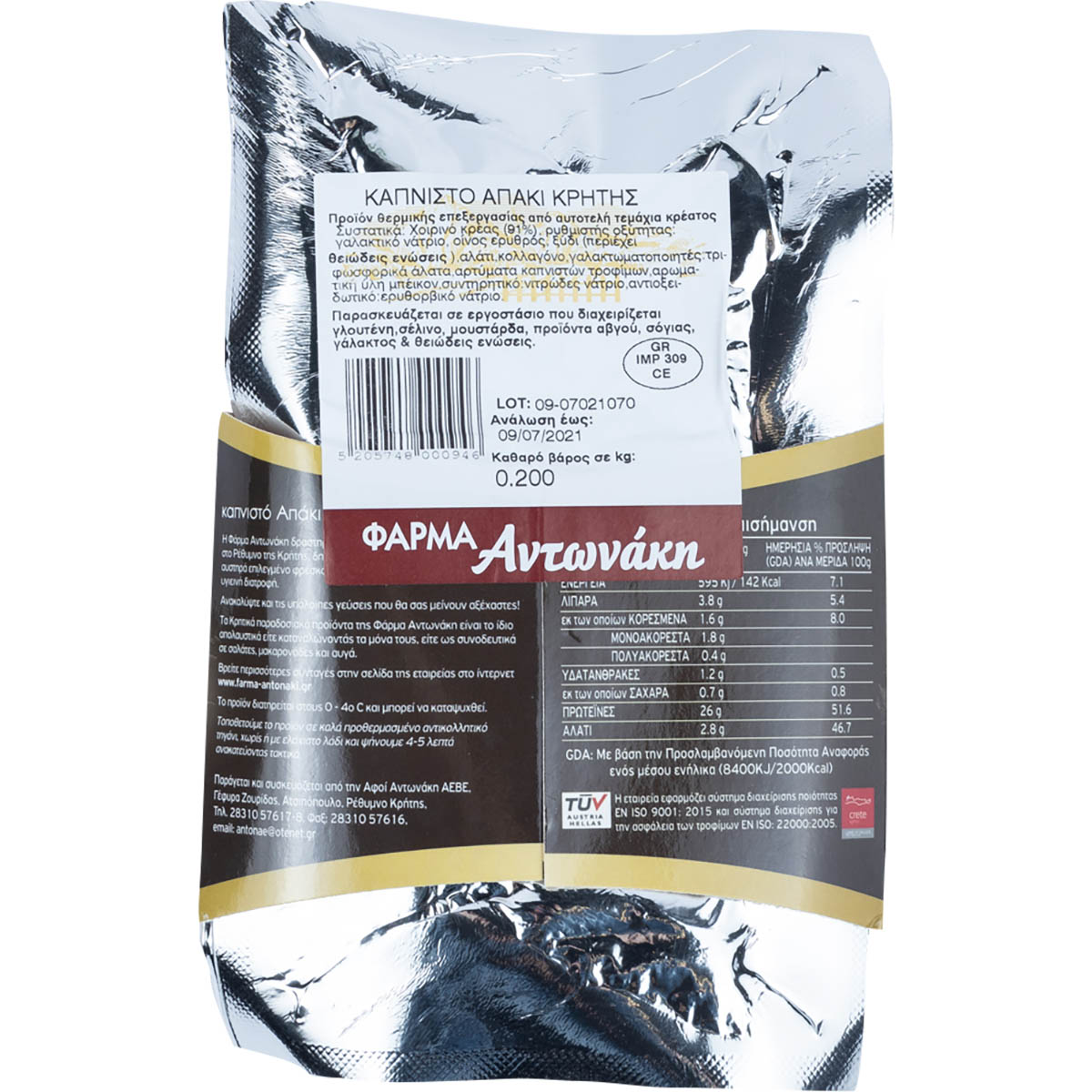 Τρυφερό άπαχο κρέας, μαριναρισμένο φυσικά σε ξύδι και καπνισμένο με αρωματικά φυτά.