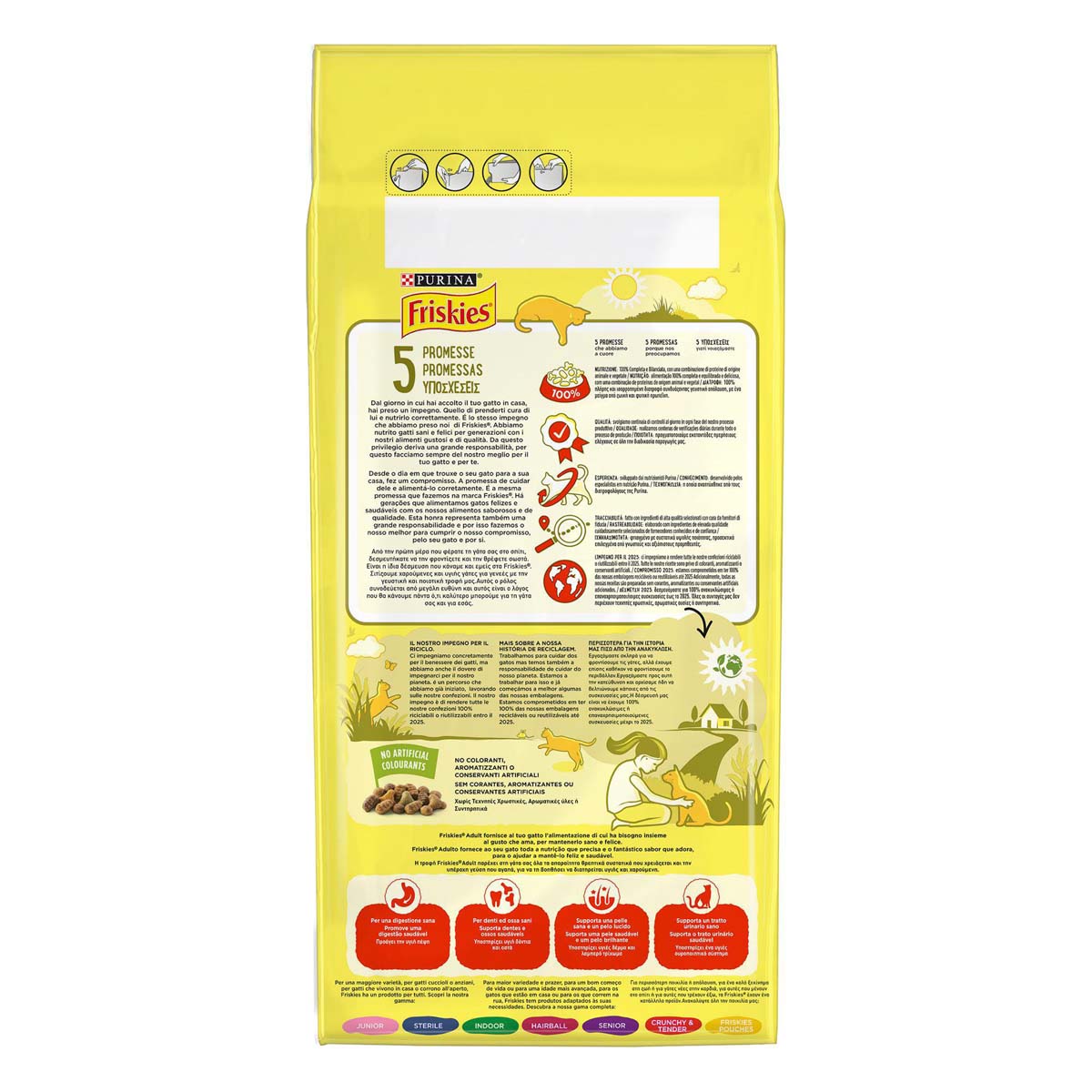 Ξηρή Τροφή Γάτας. Οι γάτες είναι εξερευνητές από τη φύση τους, αντιλαμβάνονται τα πάντα στο περιβάλλον τους. Αυτό είναι που τις κάνει τόσο γοητευτικά και ενεργά μέλη της οικογένειας. Γι' αυτό οι ειδικοί της Purina® έχουν δημιουργήσει τα Friskies® για ενήλικες γάτες: νόστιμη, ποιοτική τροφή για γάτες, που θρέφει το αστείρευτο ενδιαφέρον του εξερευνητή σας για τον κόσμο. Τα Friskies® διατρέφουν γάτες με σωστή, υγιεινή τροφή για δεκαετίες. Γεμίζουμε χιλιάδες μπωλ και αυτή η τιμή συνοδεύεται από τεράστια ευθύνη. Γι' αυτό οι συνταγές Friskies® παρασκευάζονται χωρίς πρόσθετες τεχνητές χρωστικές, αρωματικές ύλες ή συντηρητικά. Για να μπορείτε να συνεχίσετε να τις διατρέφετε με την ίδια νόστιμη τροφή που αγαπούν και να νιώθετε περήφανοι γι' αυτό.