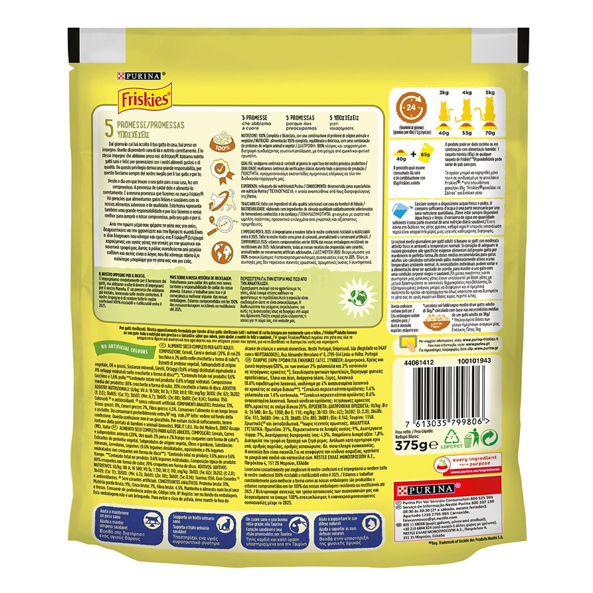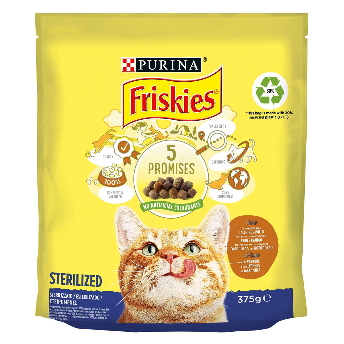 Ξηρή Τροφή Γάτας. Οι γάτες είναι εξερευνητές από τη φύση τους, αντιλαμβάνονται τα πάντα στο περιβάλλον τους. Αυτό είναι που τις κάνει τόσο γοητευτικά και ενεργά μέλη της οικογένειας. Γι' αυτό οι ειδικοί της Purina® έχουν δημιουργήσει τα Friskies® για ενήλικες γάτες: νόστιμη, ποιοτική τροφή για γάτες, που θρέφει το αστείρευτο ενδιαφέρον του εξερευνητή σας για τον κόσμο. Τα Friskies® διατρέφουν γάτες με σωστή, υγιεινή τροφή για δεκαετίες. Γεμίζουμε χιλιάδες μπωλ και αυτή η τιμή συνοδεύεται από τεράστια ευθύνη. Γι' αυτό οι συνταγές Friskies® παρασκευάζονται χωρίς πρόσθετες τεχνητές χρωστικές, αρωματικές ύλες ή συντηρητικά. Για να μπορείτε να συνεχίσετε να τις διατρέφετε με την ίδια νόστιμη τροφή που αγαπούν και να νιώθετε περήφανοι γι' αυτό.