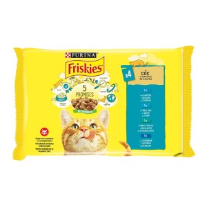 Friskies 5 Promises Υγρή Τροφή Για Γάτες Με Θαλασσινά Σε Σάλτσα 4 x 85 gr