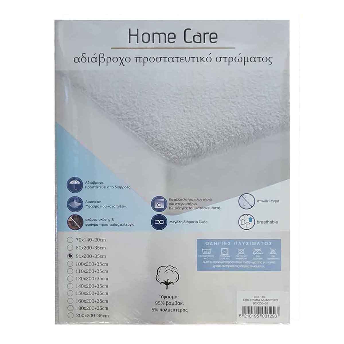 Home Care Επίστρωμα Αδιάβροχο 90 x 200 cm + Φάσα 35 cm