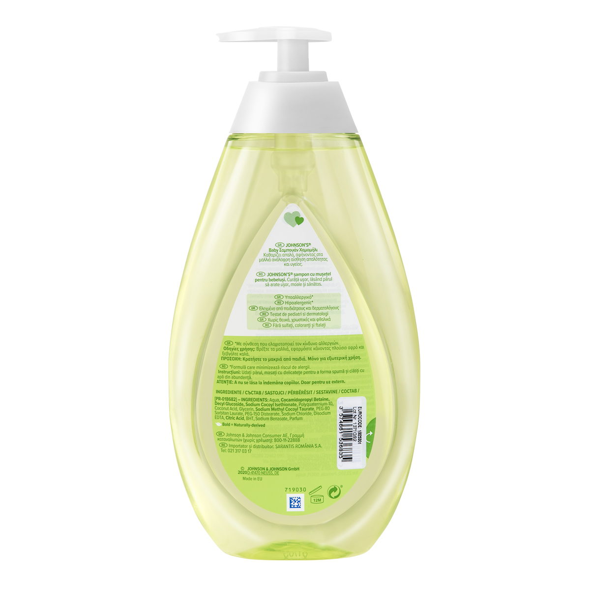 Το Johnson's® Baby Shampoo Χαμομήλι 500ml με υποαλλεργική σύνθεση απαλή για τα μάτια καθαρίζει απαλά την ευαίσθητη επιδερμίδα του μωρού και την αφήνει ενυδατωμένη και με υγιή όψη. Υποαλλεργικό*, με ισορροπημένο pH για την επιδερμίδα. Ελεγμένο από παιδίατρους και δερματολόγους, Χωρίς χρωστικές ουσίες, parabens, φθαλικές ενώσεις, θειικά άλατα, αλκοόλη και σαπούνι. Η σύνθεση ΟΧΙ ΠΙΑ ΔΑΚΡΥΑ® είναι το ίδιο απαλή για τα μάτια όπως το καθαρό νερό, προσφέροντας ξέγνοιαστες στιγμές στο μπάνιο. Με άρωμα χαμομηλιού. Αφήνει τα μαλλιά καθαρά και με υγιή όψη.