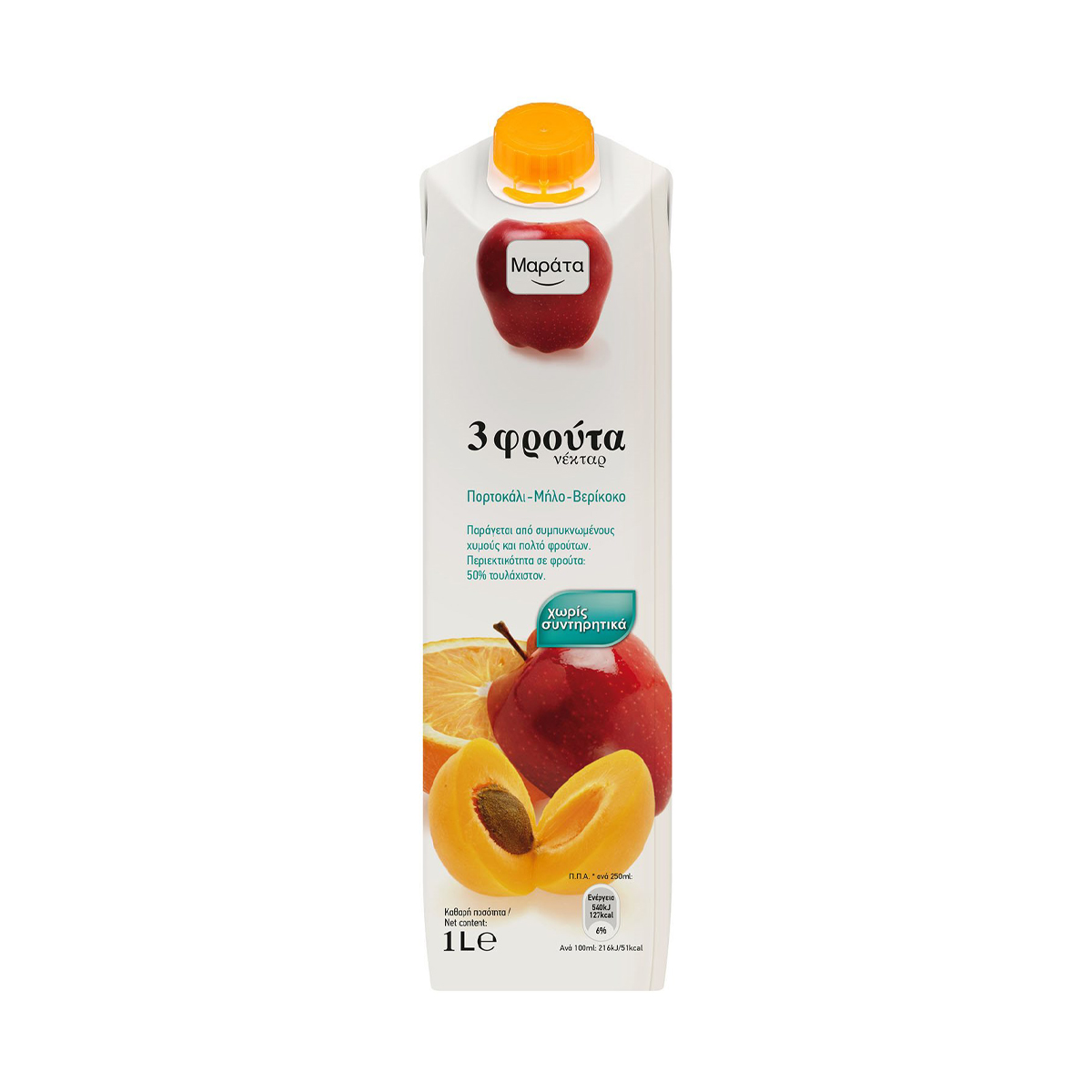 Απολαύστε το χυμό Μαράτα με υπέροχη γεύση πορτοκάλι, μήλο και βερίκοκο.