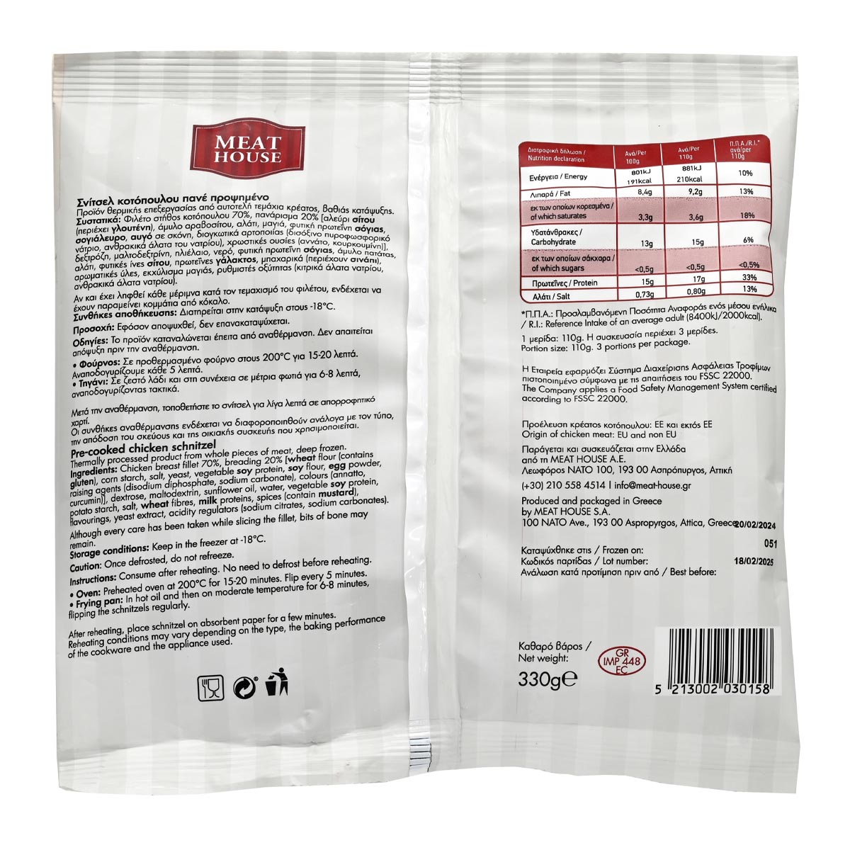 Meat House Σνίτσελ Κοτόπουλο Πανέ Προψημένο 330 gr