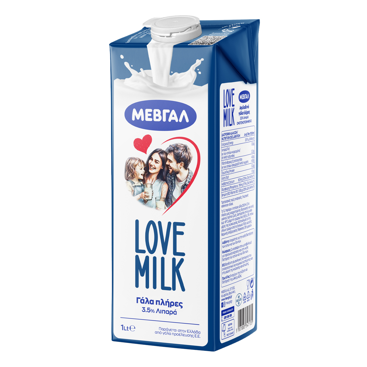 Η κλασική γεύση και η υψηλή θρεπτική αξία του γάλακτος μακράς διάρκειας Love Milk. Φτάνει στο ψυγείο σας με την εγγύηση ποιότητας που συνοδεύει τη μακρόχρονη εμπειρία της ΜΕΒΓΑΛ.