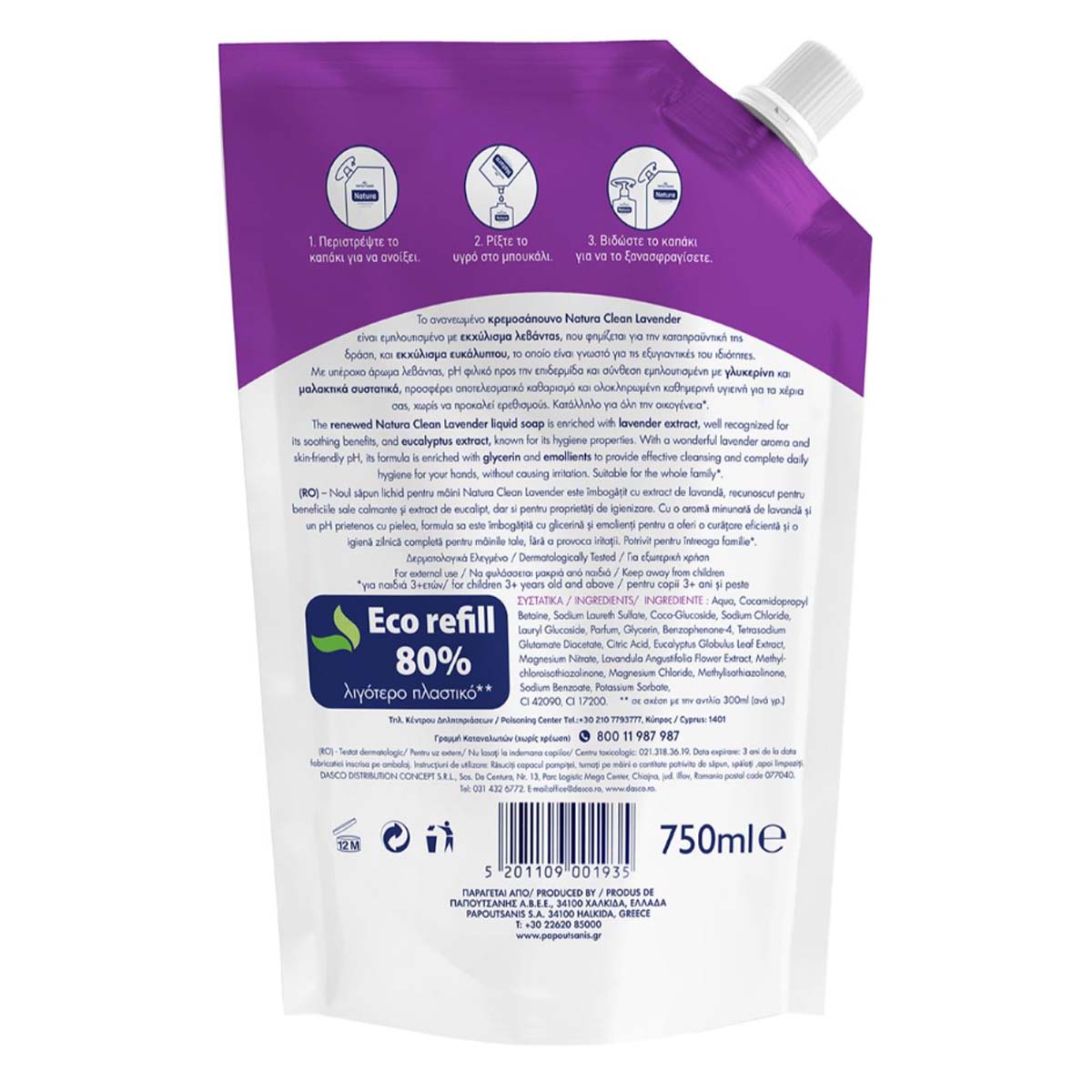 Το κρεμοσάπουνο Natura Clean Lavender με εκχύλισμα λεβάντας, αποτελεί τον καθημερινό «σύμμαχο» ενάντια στα μικρόβια. Με φιλικό pH και ενισχυμένη σύνθεση από αντιβακτηριδιακό παράγοντα,γλυκερίνη και απαλυντικά συστατικά, προσφέρει ενυδάτωση, φρεσκάδα και καθημερινή υγιεινή για τα χέρια. Κατάλληλο για όλη την οικογένεια.