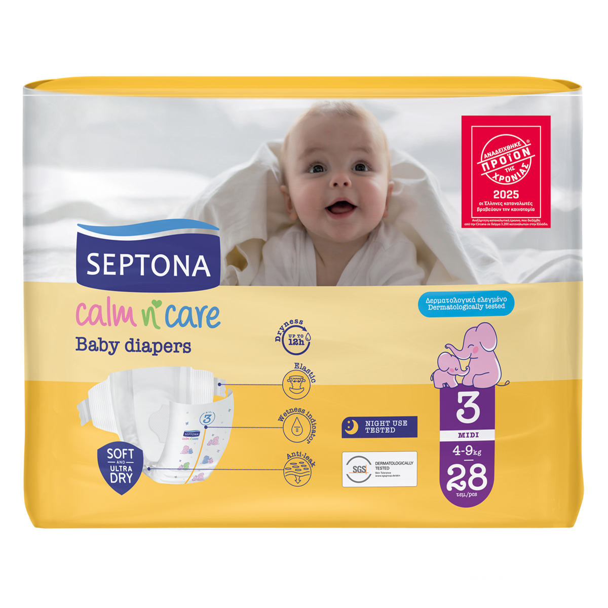 Septona Calm N' Care Πάνες Βρεφών Ν3 Midi 4-9 kg 28 Τεμάχια