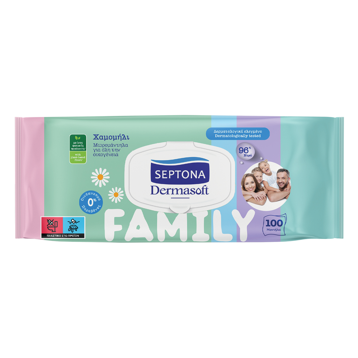 Τα απαλά μωρομάντιλα septona dermasoft είναι ιδανικά για την καθημερινή περιποίηση της επιδερμίδας όλης της οικογένειας. Η ιδιαίτερα ήπια σύνθεσή τους με εκχύλισμα χαμομηλιού, βιταμίνη Ε και 96% νερό, καθαρίζει απαλά το δέρμα, προσφέροντας ταυτόχρονα φυσική φροντίδα και φρεσκάδα.