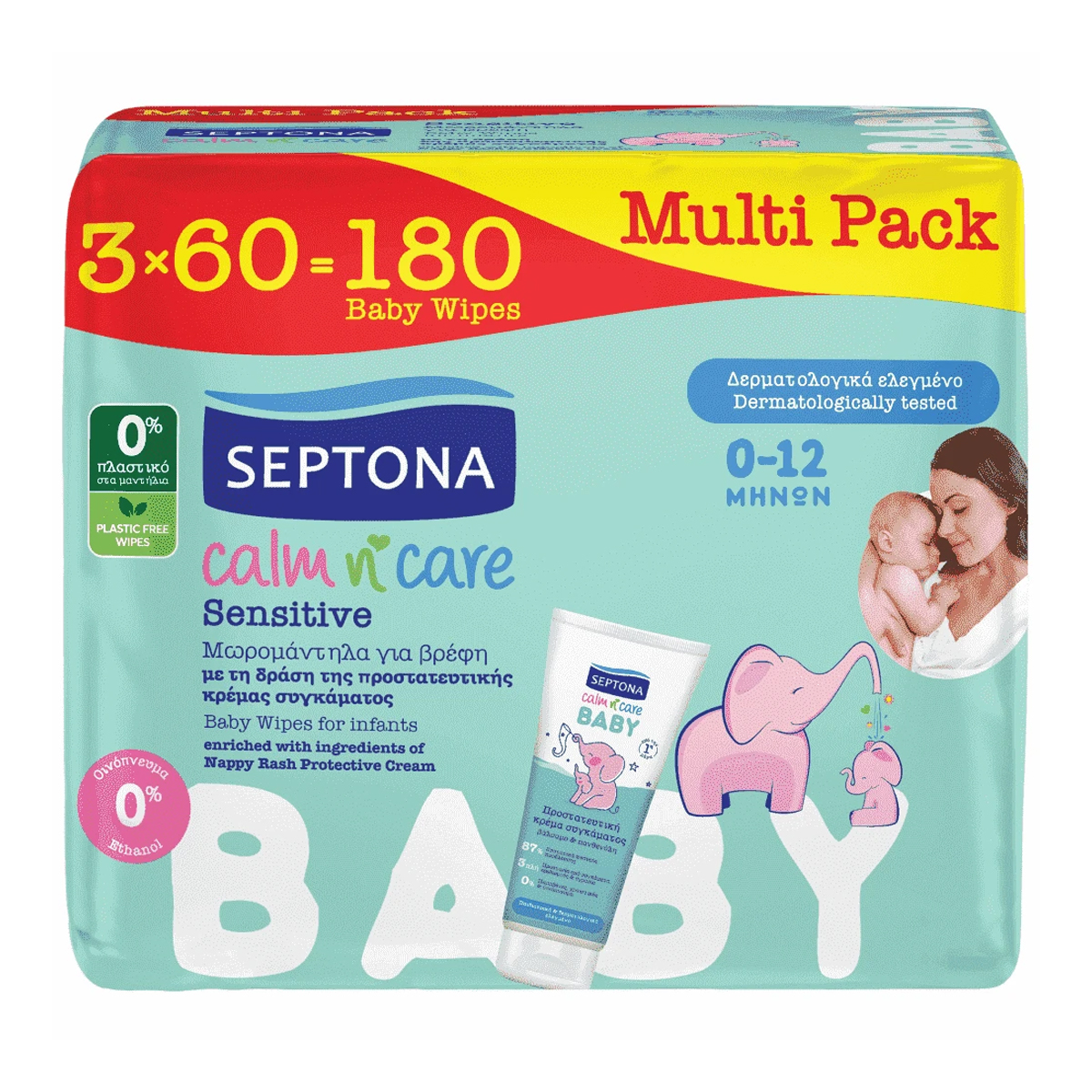 Το δέρμα του μωρού σας είναι δείκτης της υγείας του. Τα απαλά μωρομάντηλα SEPTONA calm n’ care Sensitive είναι ιδανικά για την καθημερινή περιποίηση της ευαίσθητης βρεφικής επιδερμίδας από την 1η μέρα. Η ιδιαίτερα ήπια σύνθεσή τους καθαρίζει απαλά το δερματάκι του μωρού σας. Επιπλέον τα συστατικά της προστατευτικής κρέμας συγκάματος SEPTONA, προσταυτεύουν ταυτόχρονα από ερεθισμούς κατά την αλλαγή της πάνας.