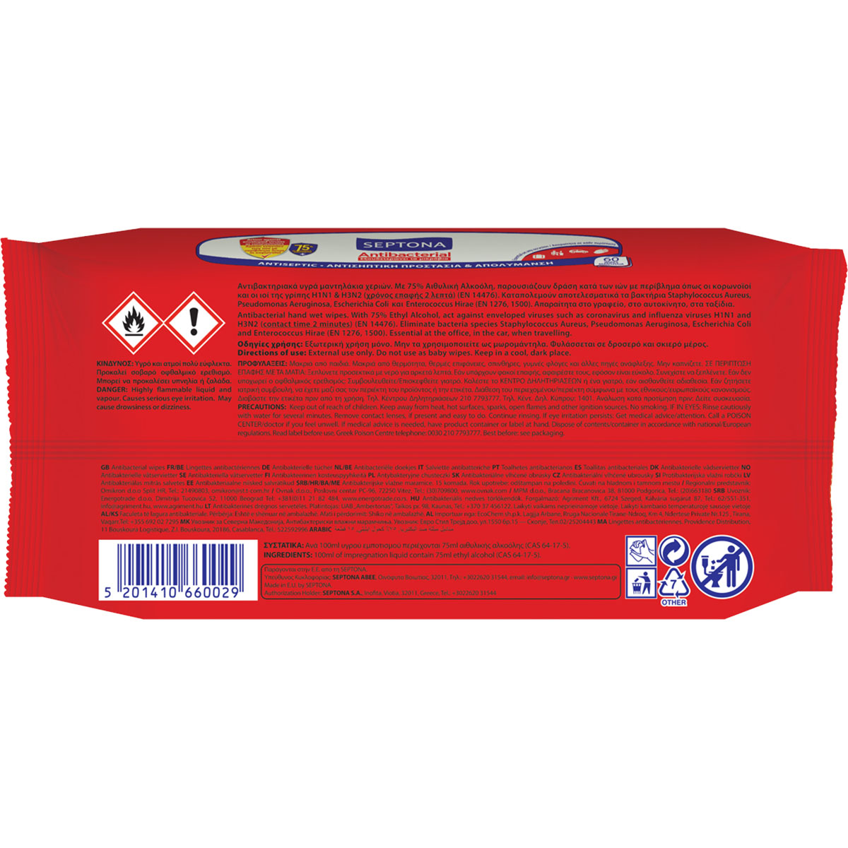 Μαντιλάκια μιας χρήσης με ήπια αντισηπτική δράση για καθημερινή χρήση με διακριτικό ευχάριστο άρωμα.