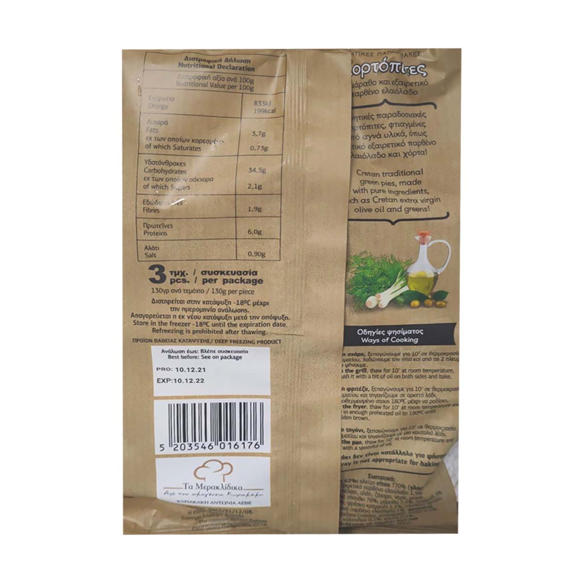 Φτιαγμένη με την μαεστρία της κρητικής γιαγιάς, η παραδοσιακή μας χορτόπιτα είναι λεπτή και τραγανή, γεμισμένη με άγρια χόρτα της κρητικής γης και πλούσιο άρωμα μάραθου.