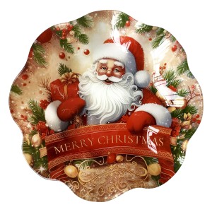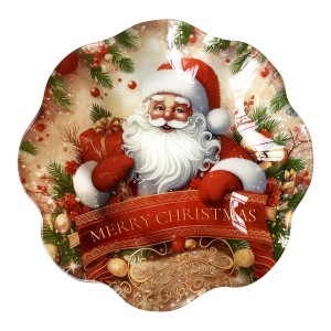 Χριστουγεννιάτικη Πιατέλα Γυάλινη Άγιος Βασίλης 25 cm