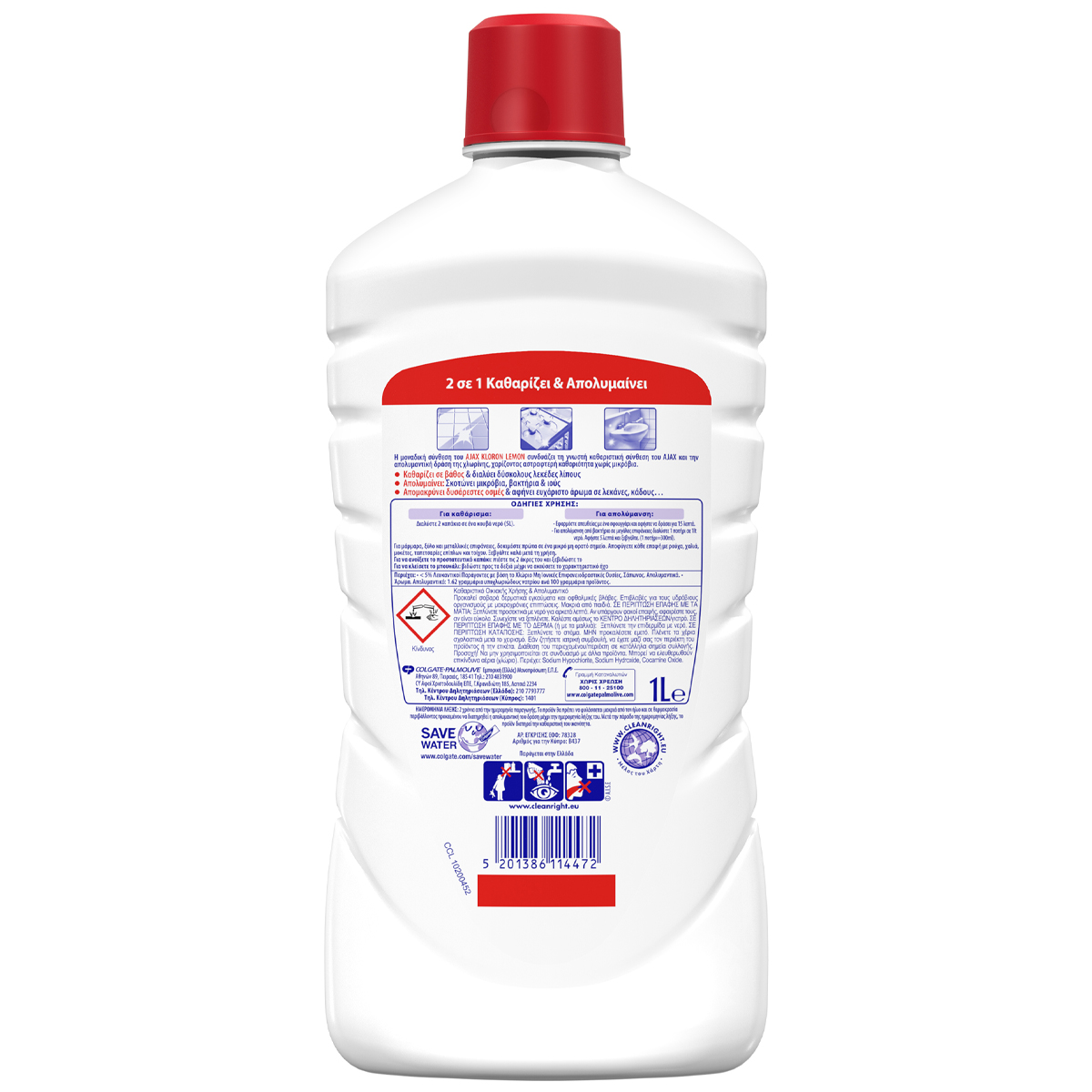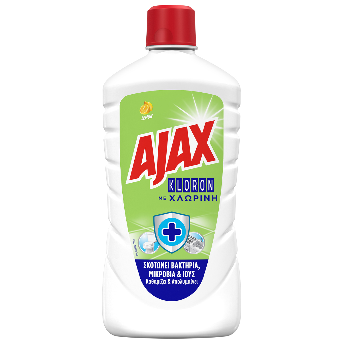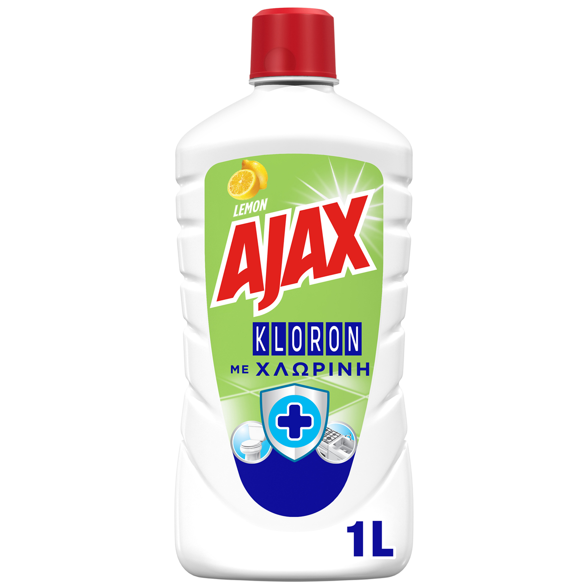 2 in 1 Cleans and disinfects! The unique composition of AJAX KLORON LEMON combines the well-known cleaning composition of AJAX and the disinfectant action of bleach, giving sparkling cleanliness without germs. It cleans deeply and dissolves tough grease stains! Disinfects Removes unpleasant odors and leaves a pleasant scent in basins, buckets.