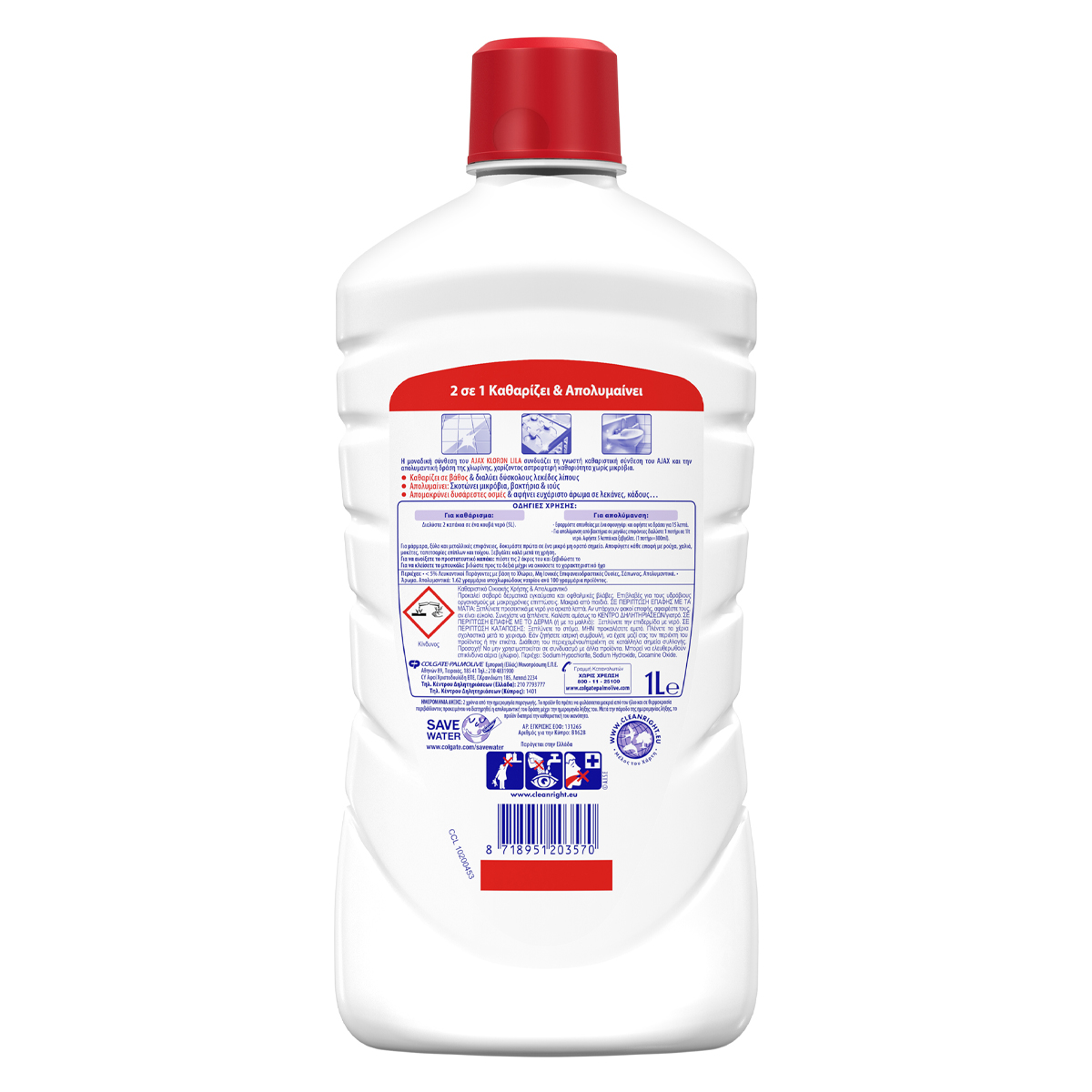2 in 1 Cleans and disinfects! The unique composition of AJAX KLORON LILA combines the well-known cleaning composition of AJAX and the disinfectant action of bleach, giving sparkling cleanliness without germs. It cleans deeply and dissolves tough grease stains! Disinfects Removes unpleasant odors and leaves a pleasant scent in basins, buckets.