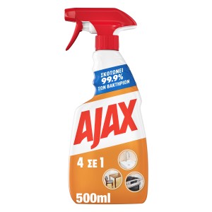 The Ajax 4 IN 1 Cleaner Spray cleans instantly and thoroughly by treating all kinds of dirt. The all-purpose cleaning spray cleans instantly and deeply, giving surfaces a shine. Bottle made of 100% acylated plastic. Recyclable bottle and pump.